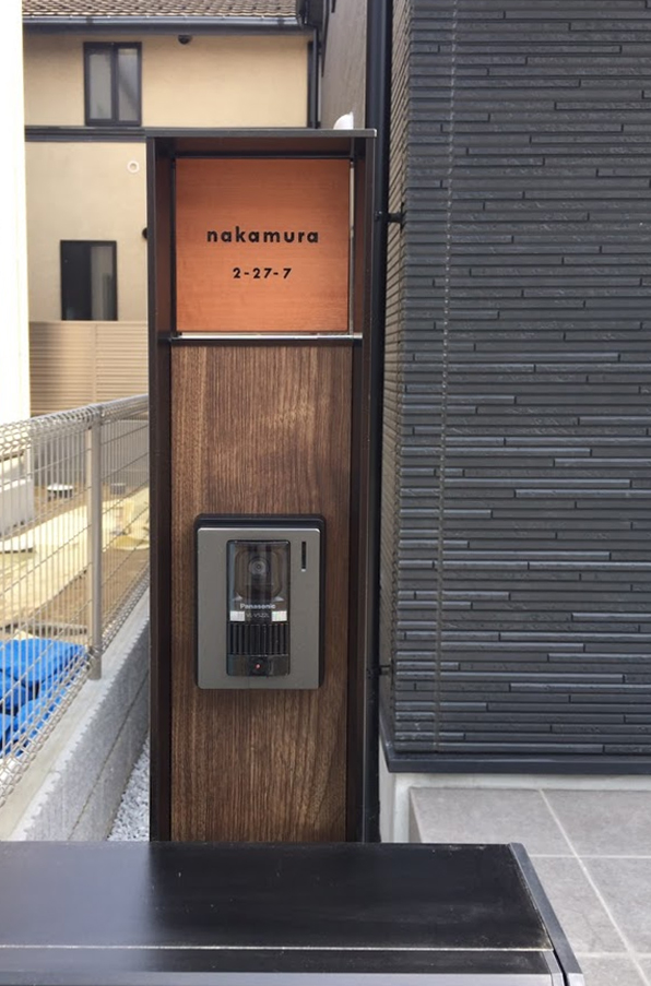 木の表札 機能門柱用 2019/3/31 日曜日2019/9/30 月曜日 by miyasu 施工写真 木の表札 機能門柱 オーダー表札 13cmX13cmアパ風水ガラスコーティング木機能門柱施工写真 機能門柱用に製作した無垢のアパ材の表札 門柱の写真を拝見してご提案しました 13x13cm 木の表面はガラスコーティング処理 機能門柱の表札取り付け部のアクリルプレートにビス固定します LINE@で打ち合わせ 東京に送ります 表札 設置写真 nakamura 中村 お問い合せ用URL : このページで紹介した作品についてのお問い合わせは、上記URLをコピーして 『お問い合せ』のぺージの記入欄に上記「お問い合せ用URL」を貼り付けてご連絡ください。 ご質問、見積依頼、ご注文についても『お問い合せ』のページからヒロノクラフト公式LINE及びメールでお願いします。 ※ご利用いただく端末によっては、コメント送信後にエラー表示されるなどのうまく反映されない場合がございます。 その場合はLINEにて、ご連絡ください。