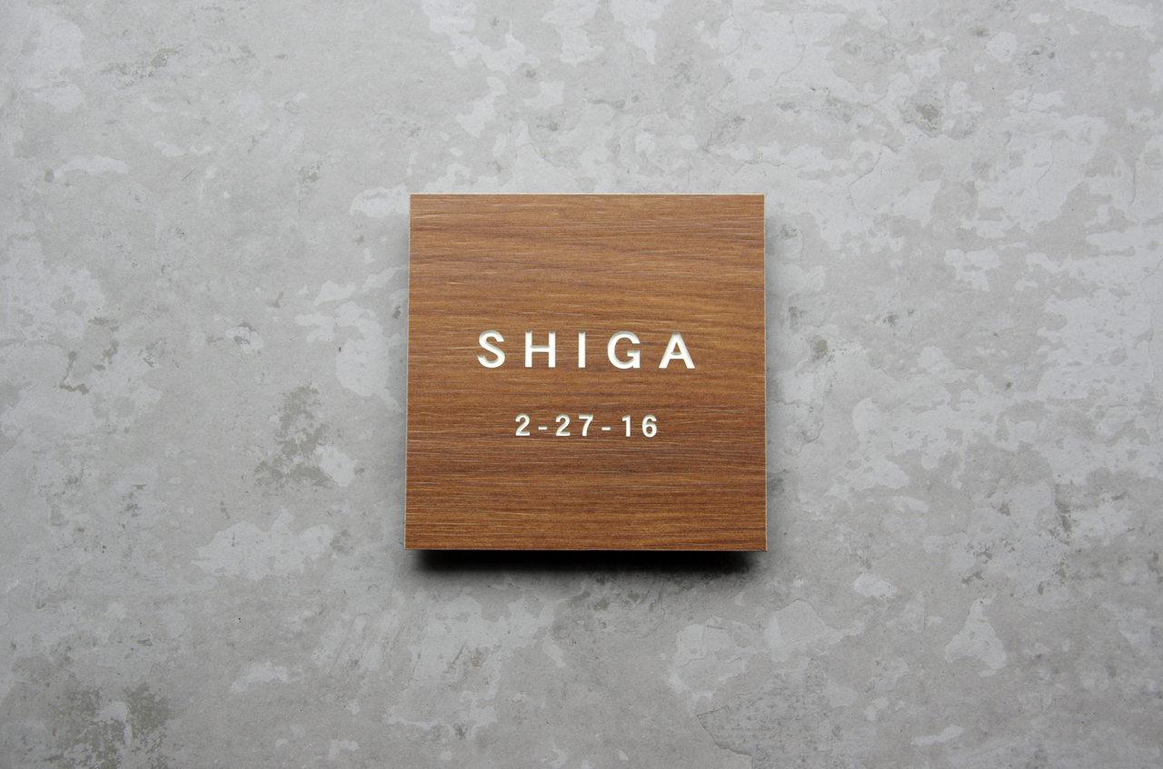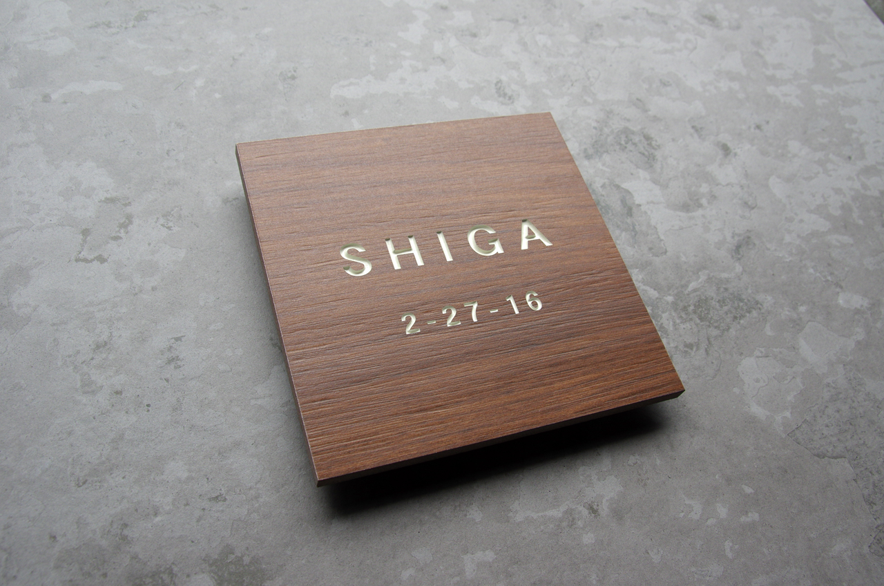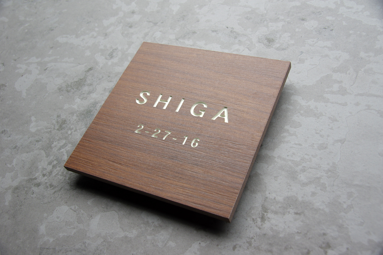 LIXILの機能門柱ウィルモダン用に合わせて製作した木目調タイル表札
