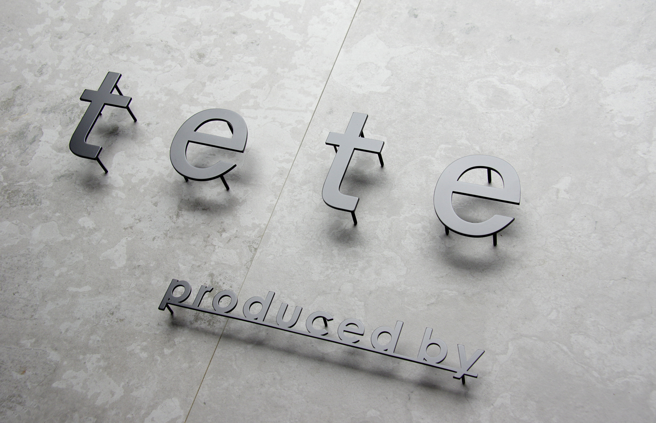 マットブラック仕上の美容室の看板『tete 』