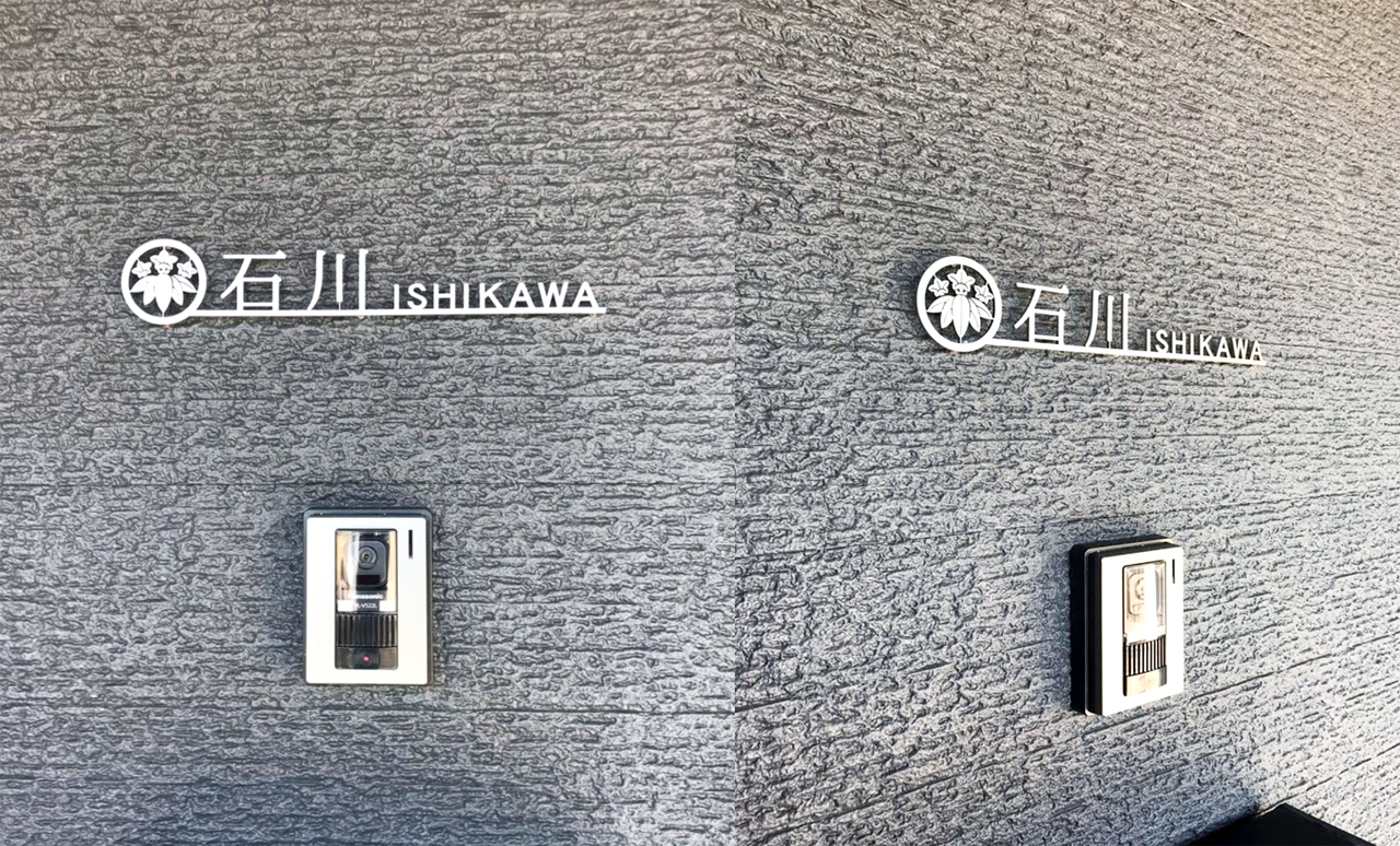 家紋がとてもかっこよくて気に入っています。打ち合わせもLINEで簡単に出来ましたし、色々アドバイスをしていただけたので良かったです。外構で取り付け方がイメージと違うように取付されてしまった時も(私は気付かず…)すぐに電話を掛けてくださりすごく助かりました。オーダーメイドなので世界で一つだけの表札が出来て満足しています。表札を見た方は大体がかっこいいと褒めてくれます。本当にありがとうございました。