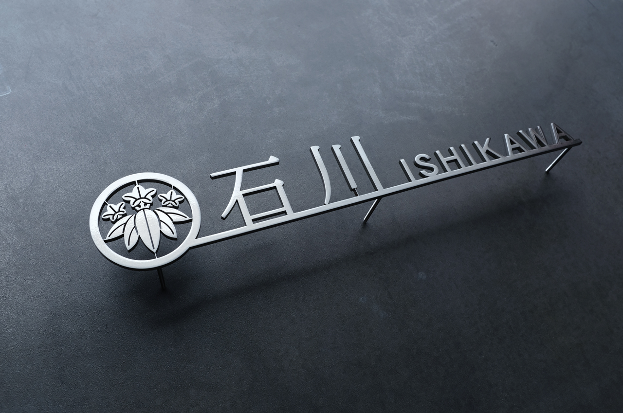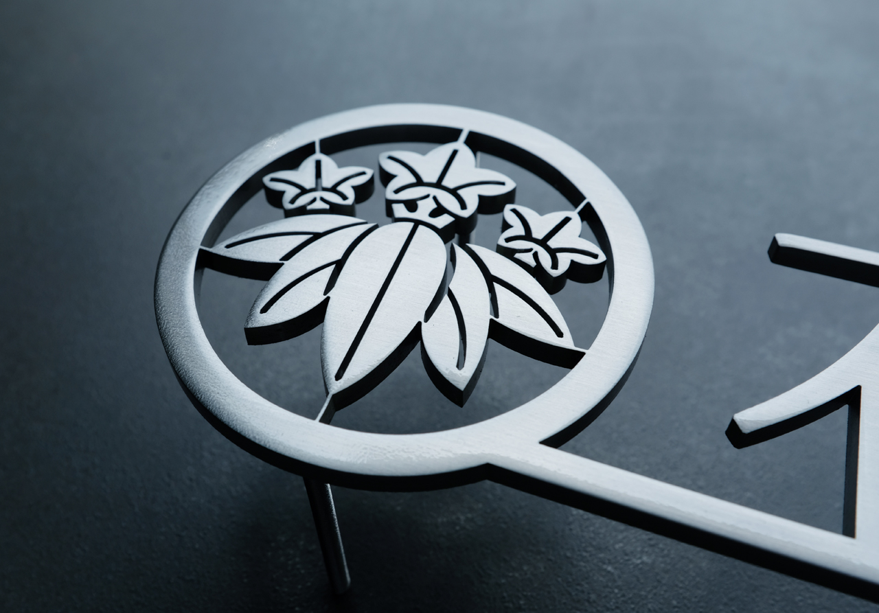 家紋『丸に笹竜胆(ささりんどう)』のステンレス切り文字表札