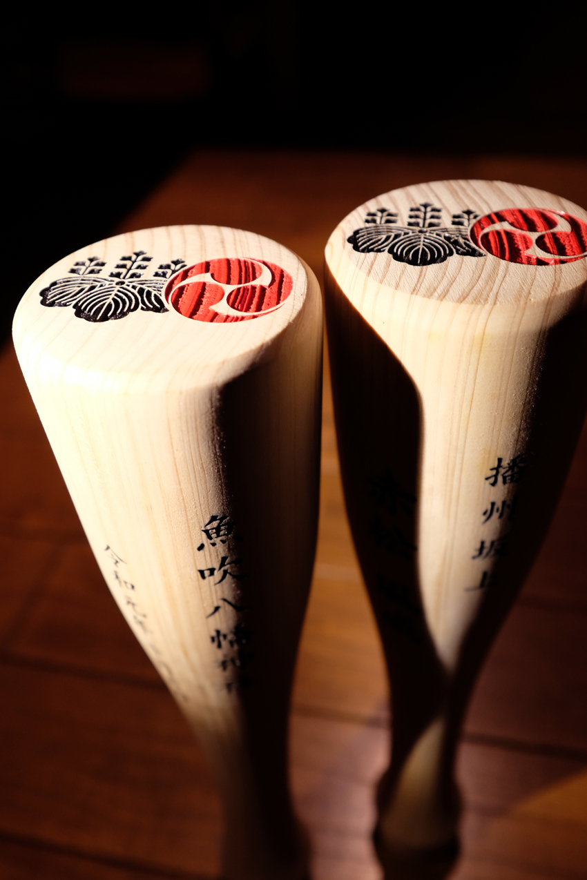 秋祭り 太鼓の撥(バチ)に彫刻 2019/9/9 月曜日2019/9/9 月曜日 by miyasu 創作 創作秋祭り家紋 魚吹八幡神社の秋季例祭で使う撥(ばち)に彫刻、着色 今年は柔らかいヒノキのバチに彫刻 五七の桐と巴紋の町紋 1mm以下の細かな彫刻と曲面への彫刻を手加工で仕上げています 昨年はメープル材 お問い合せ用URL : このページで紹介した作品についてのお問い合わせは、上記URLをコピーして 『お問い合せ』のぺージの記入欄に上記「お問い合せ用URL」を貼り付けてご連絡ください。 ご質問、見積依頼、ご注文についても『お問い合せ』のページからヒロノクラフト公式LINE及びメールでお願いします。 ※ご利用いただく端末によっては、コメント送信後にエラー表示されるなどのうまく反映されない場合がございます。 その場合はLINEにて、ご連絡ください。