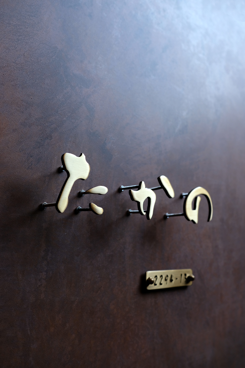 いぶし仕上げの真鍮切り文字表札 独立文字 ひらがな