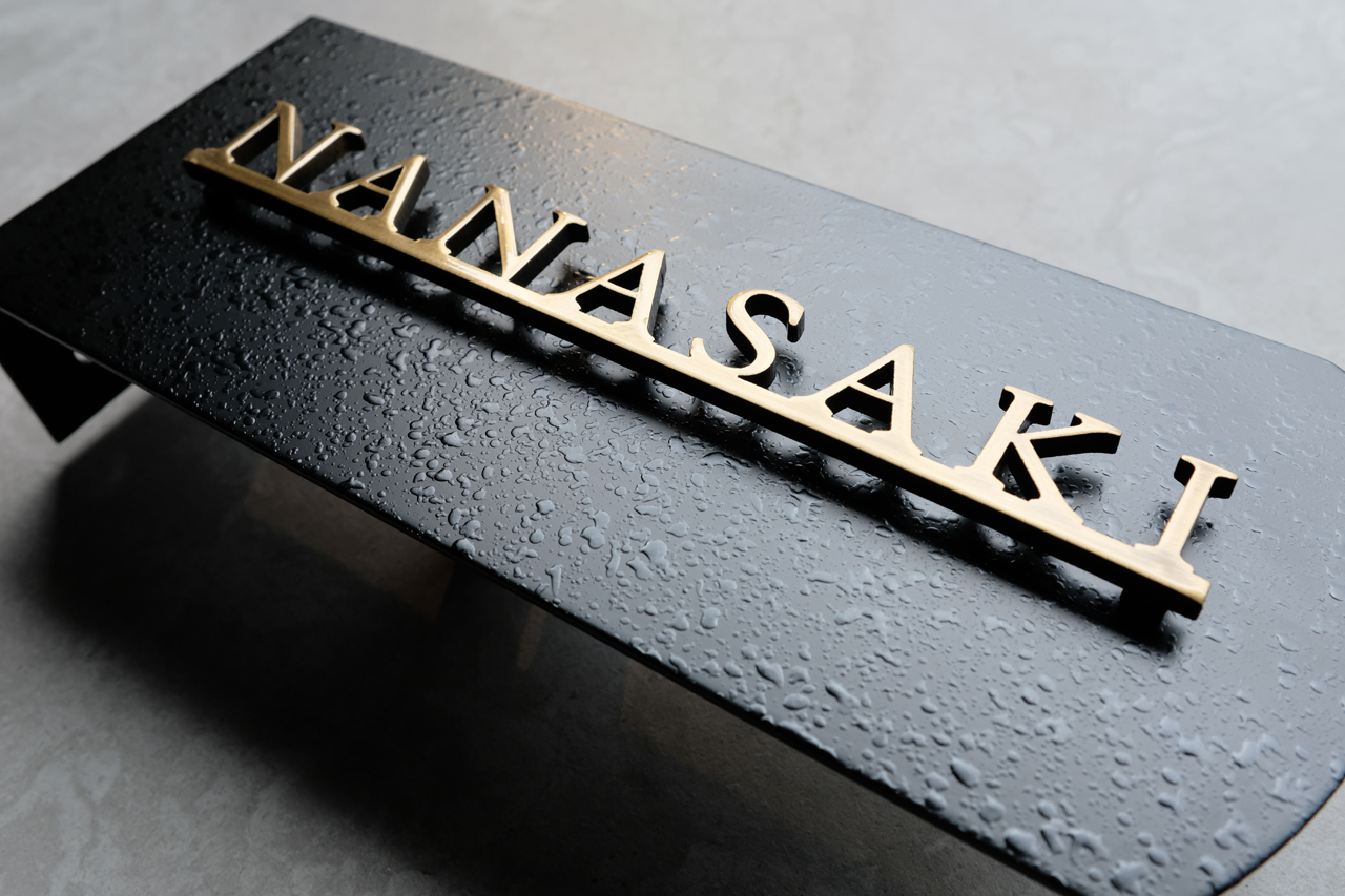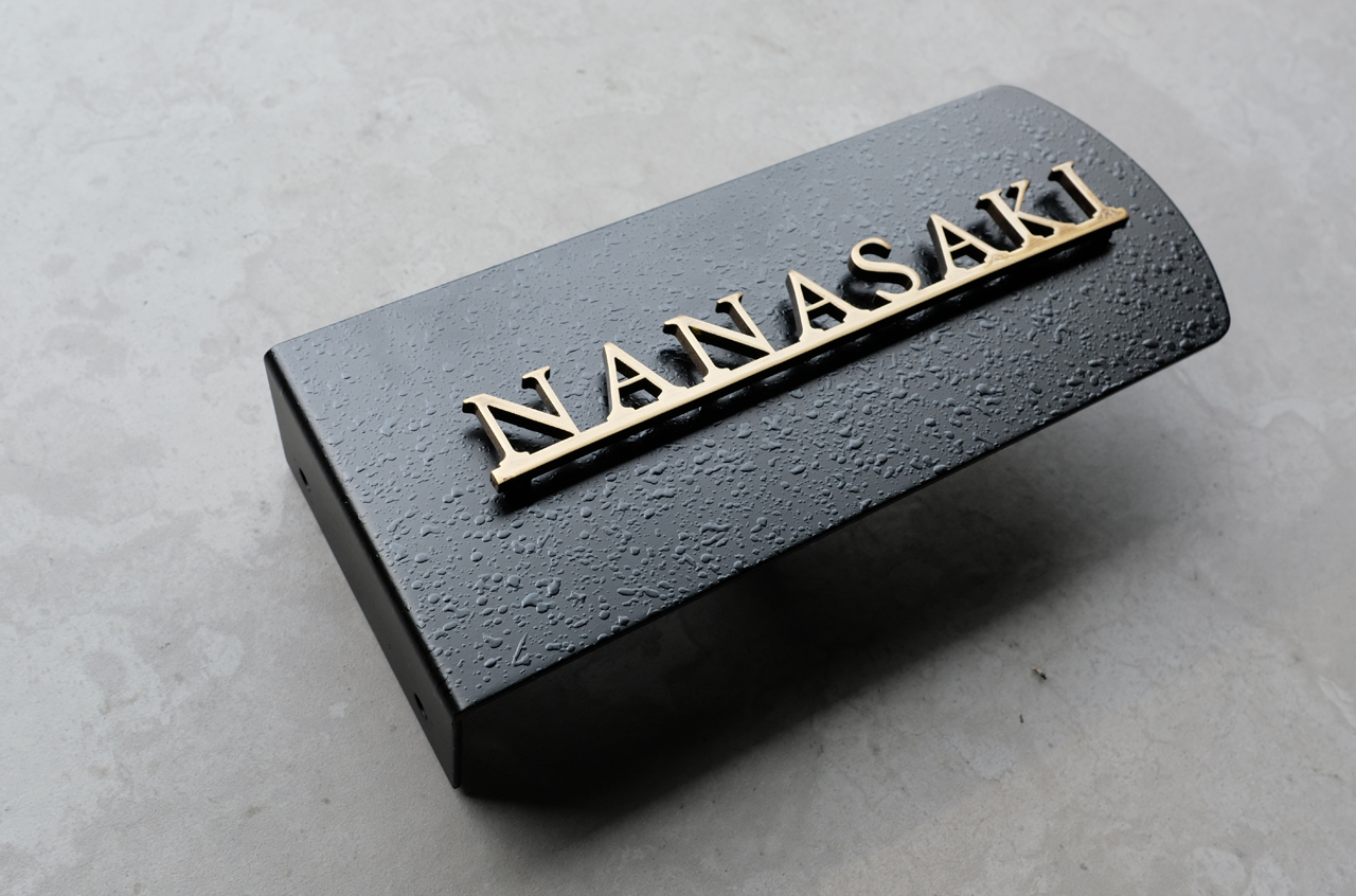 機能門柱用のいぶし真鍮切り文字表札