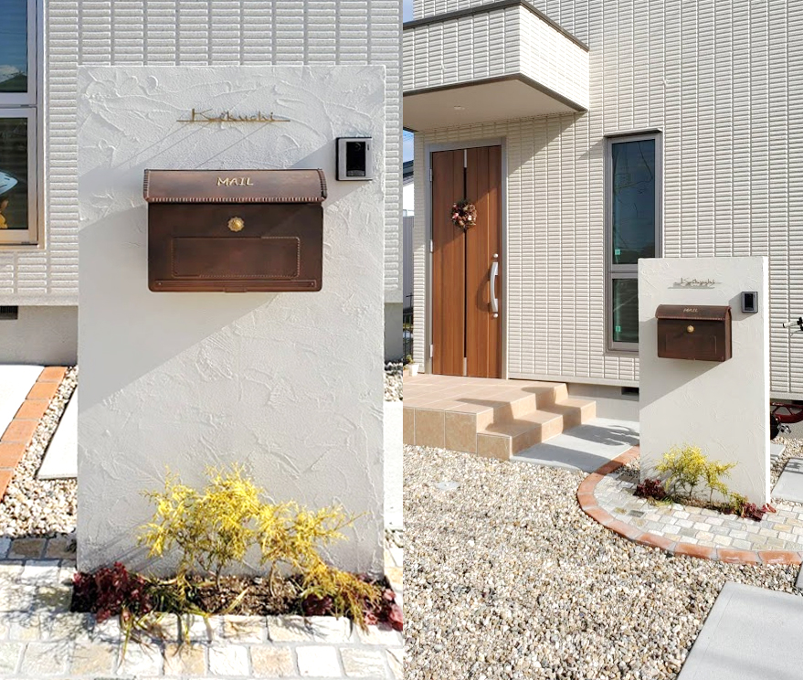 切り文字表札は門柱から1cmほど浮かせて固定すると影が出来て綺麗に映ります