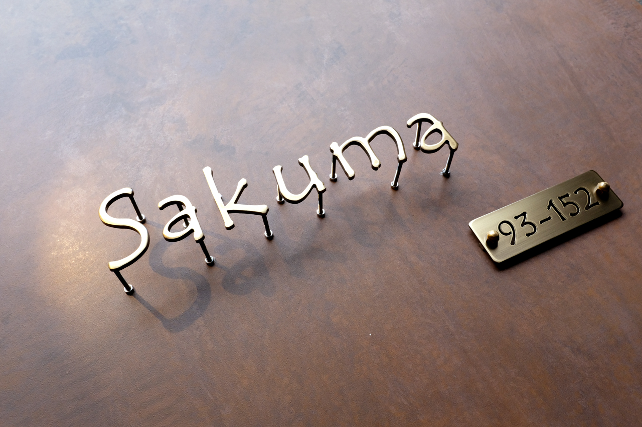 いぶし真鍮切り文字表札 番地プレート 2019/10/23 水曜日 by miyasu 真鍮切り文字表札 いぶし仕上げ真鍮いぶし番地プレート浮き文字真鍮切り文字番地ウレタントップコート いぶし仕上げの真鍮切り文字表札 独立文字と番地プレート 玄関の写真を拝見してご提案しました 表札幅 250mm 番地110x36mm いぶし仕上げで真鍮の表面をエイジング加工しています LINE@で打ち合わせ 福島県に送ります sakuma お問い合せ用URL : このページで紹介した作品についてのお問い合わせは、上記URLをコピーして 『お問い合せ』のぺージの記入欄に上記「お問い合せ用URL」を貼り付けてご連絡ください。 ご質問、見積依頼、ご注文についても『お問い合せ』のページからヒロノクラフト公式LINE及びメールでお願いします。 ※ご利用いただく端末によっては、コメント送信後にエラー表示されるなどのうまく反映されない場合がございます。 その場合はLINEにて、ご連絡ください。
