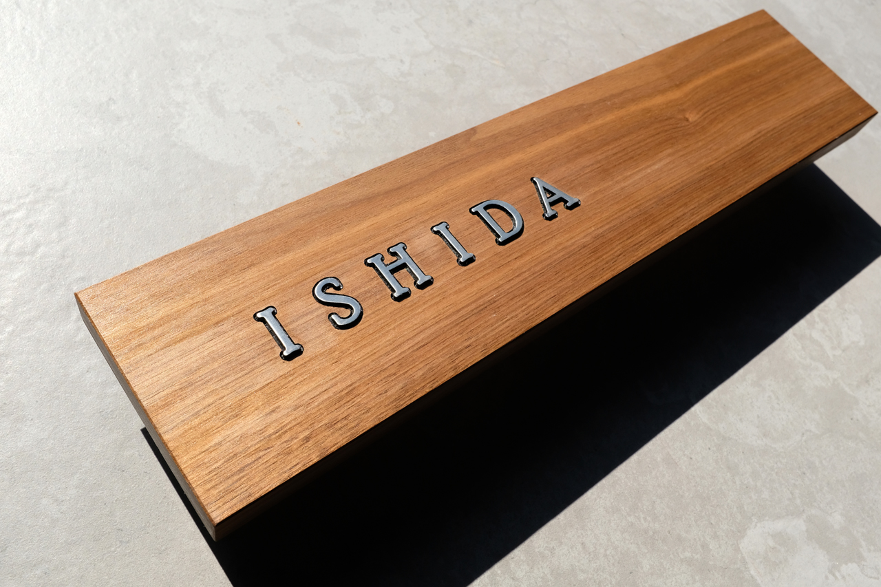 創作 ウォールナットの表札 ステンレス象嵌 2019/11/11 月曜日 by miyasu 木の表札 ステンレス切り文字表札 木ステンレス切り文字象嵌浮き文字ウォールナットガラスコーティング 無垢のウォールナット材の表札 ステンレスの切り文字を象嵌加工 400x90mm 玄関の写真を拝見してご提案しました 木の表面はガラスコーティング処理 LINE@で打ち合わせ 奈良県に送ります ishida お問い合せ用URL : このページで紹介した作品についてのお問い合わせは、上記URLをコピーして 『お問い合せ』のぺージの記入欄に上記「お問い合せ用URL」を貼り付けてご連絡ください。 ご質問、見積依頼、ご注文についても『お問い合せ』のページからヒロノクラフト公式LINE及びメールでお願いします。 ※ご利用いただく端末によっては、コメント送信後にエラー表示されるなどのうまく反映されない場合がございます。 その場合はLINEにて、ご連絡ください。