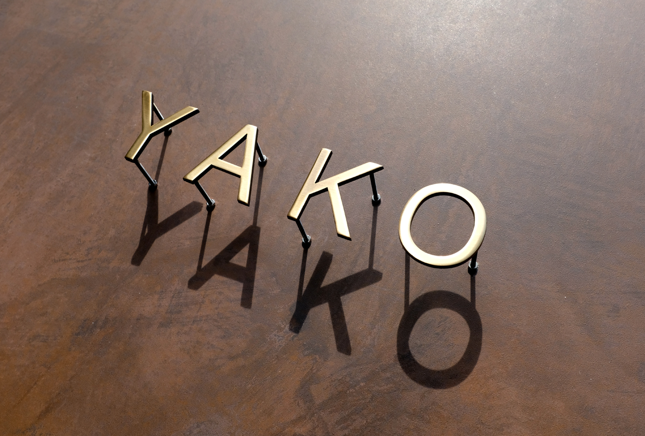 いぶし仕上げの真鍮切り文字表札 独立文字