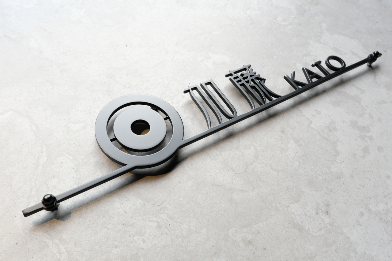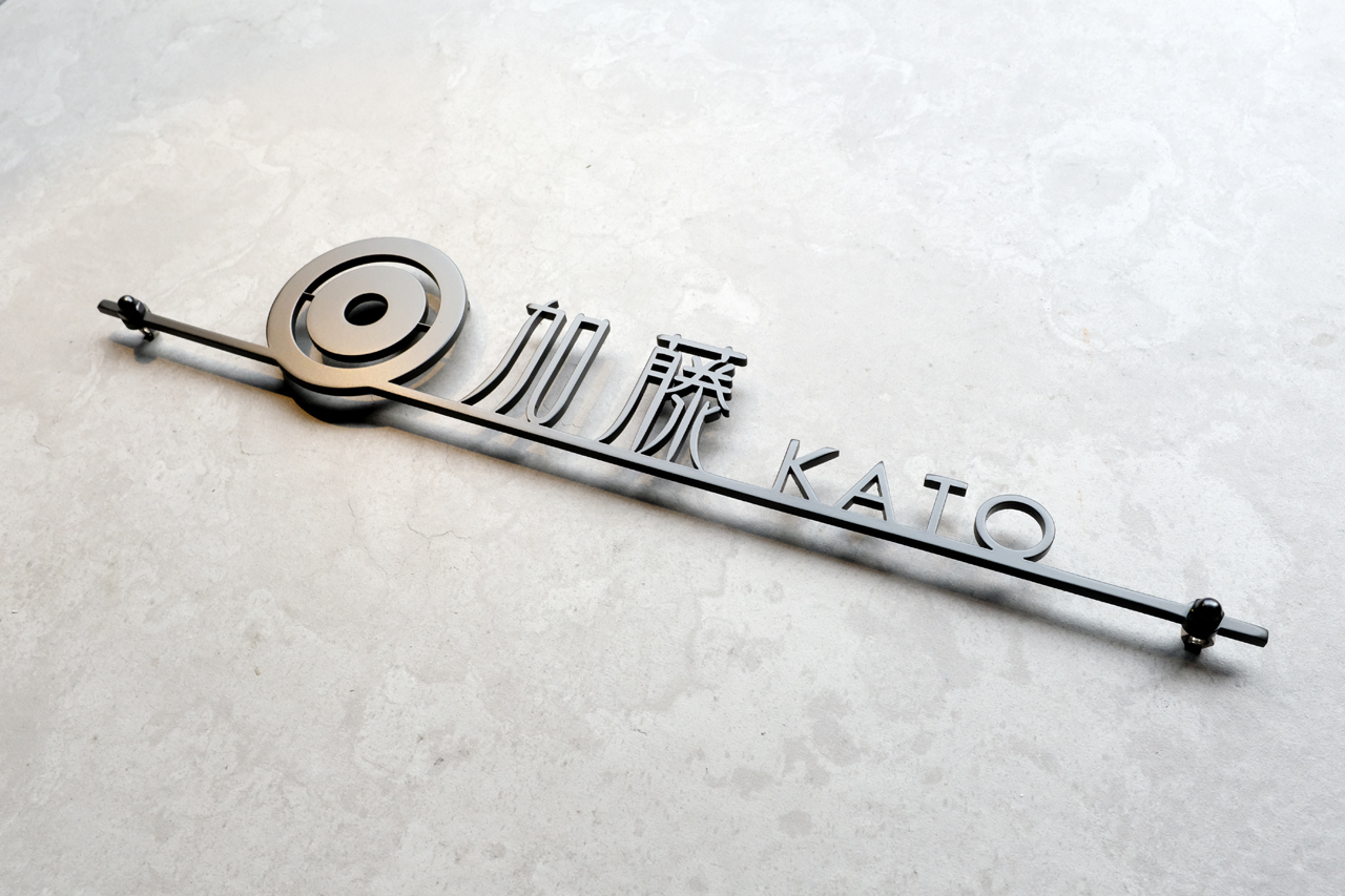 家紋『丸に蛇の目』のステンレス切り文字表札