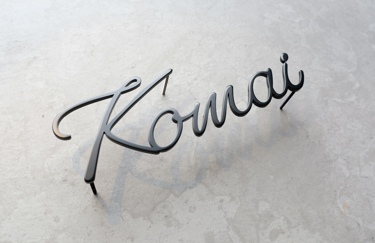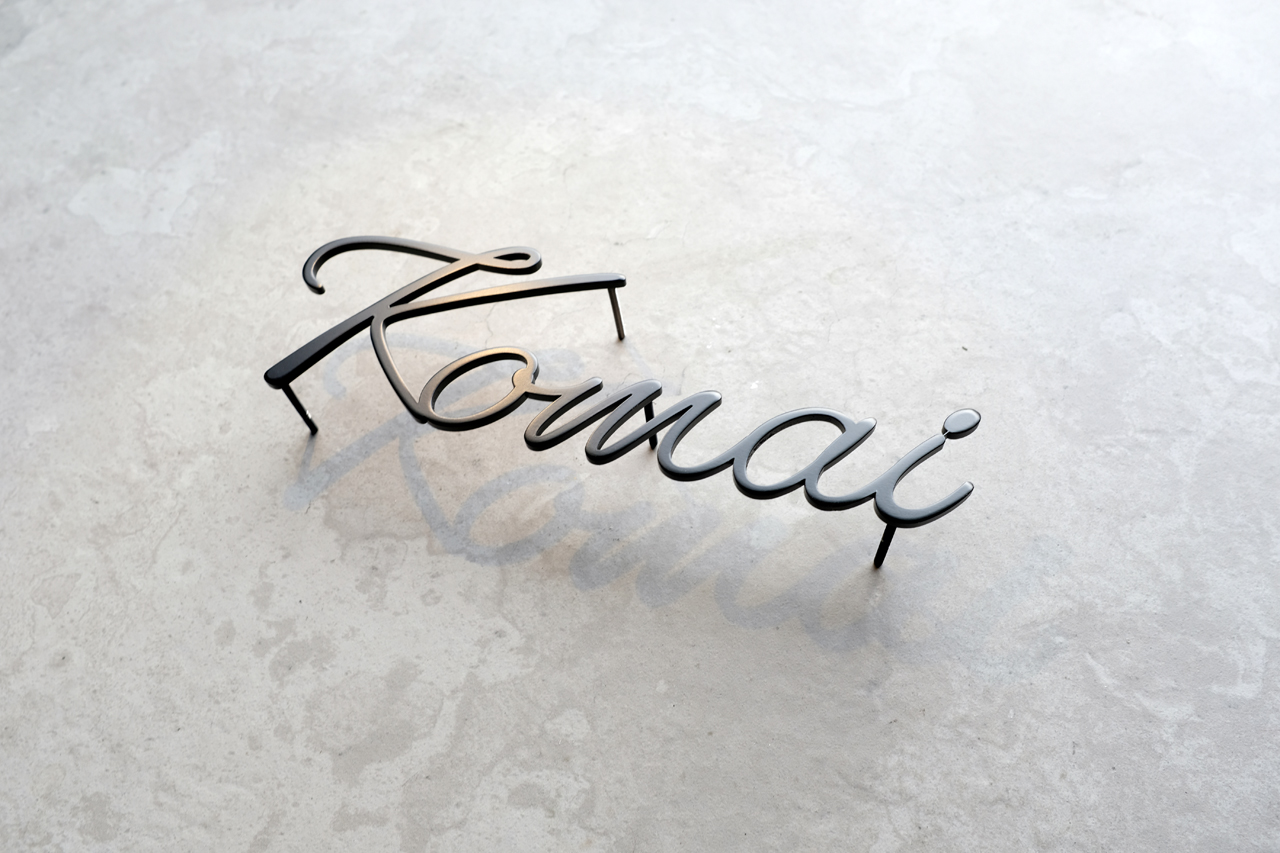 ステンレス切り文字表札 マットブラック 2019/12/21 土曜日 by miyasu ステンレス切り文字表札 ステンレス切り文字浮き文字ブラック塗装マットブラック焼付け塗装筆記体 マットブラック仕上げのステンレス切り文字表札 支給データに忠実に製作しました 表札幅250mm 研磨仕上げの後、つや消しのブラック焼付け塗装 LINE@で打ち合わせ 東京に送ります komai お問い合せ用URL : このページで紹介した作品についてのお問い合わせは、上記URLをコピーして 『お問い合せ』のぺージの記入欄に上記「お問い合せ用URL」を貼り付けてご連絡ください。 ご質問、見積依頼、ご注文についても『お問い合せ』のページからヒロノクラフト公式LINE及びメールでお願いします。 ※ご利用いただく端末によっては、コメント送信後にエラー表示されるなどのうまく反映されない場合がございます。 その場合はLINEにて、ご連絡ください。