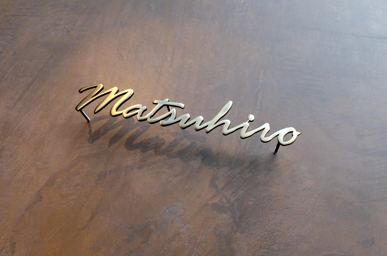 いぶし真鍮切り文字表札 2020/1/12 日曜日 by miyasu 真鍮切り文字表札 いぶし浮き文字真鍮切り文字ウレタントップコートいぶし仕上げ筆記体 いぶし仕上げの真鍮切り文字表札 門柱のイメージを拝見してご提案しました 幅300mm 手書きフォントでバランスを調整してデザインしました 門柱から1cmほど浮かせて固定すると安定感のある表札になります LINE@で打ち合わせ 大阪に送ります matsuhiro お問い合せ用URL : このページで紹介した作品についてのお問い合わせは、上記URLをコピーして 『お問い合せ』のぺージの記入欄に上記「お問い合せ用URL」を貼り付けてご連絡ください。 ご質問、見積依頼、ご注文についても『お問い合せ』のページからヒロノクラフト公式LINE及びメールでお願いします。 ※ご利用いただく端末によっては、コメント送信後にエラー表示されるなどのうまく反映されない場合がございます。 その場合はLINEにて、ご連絡ください。