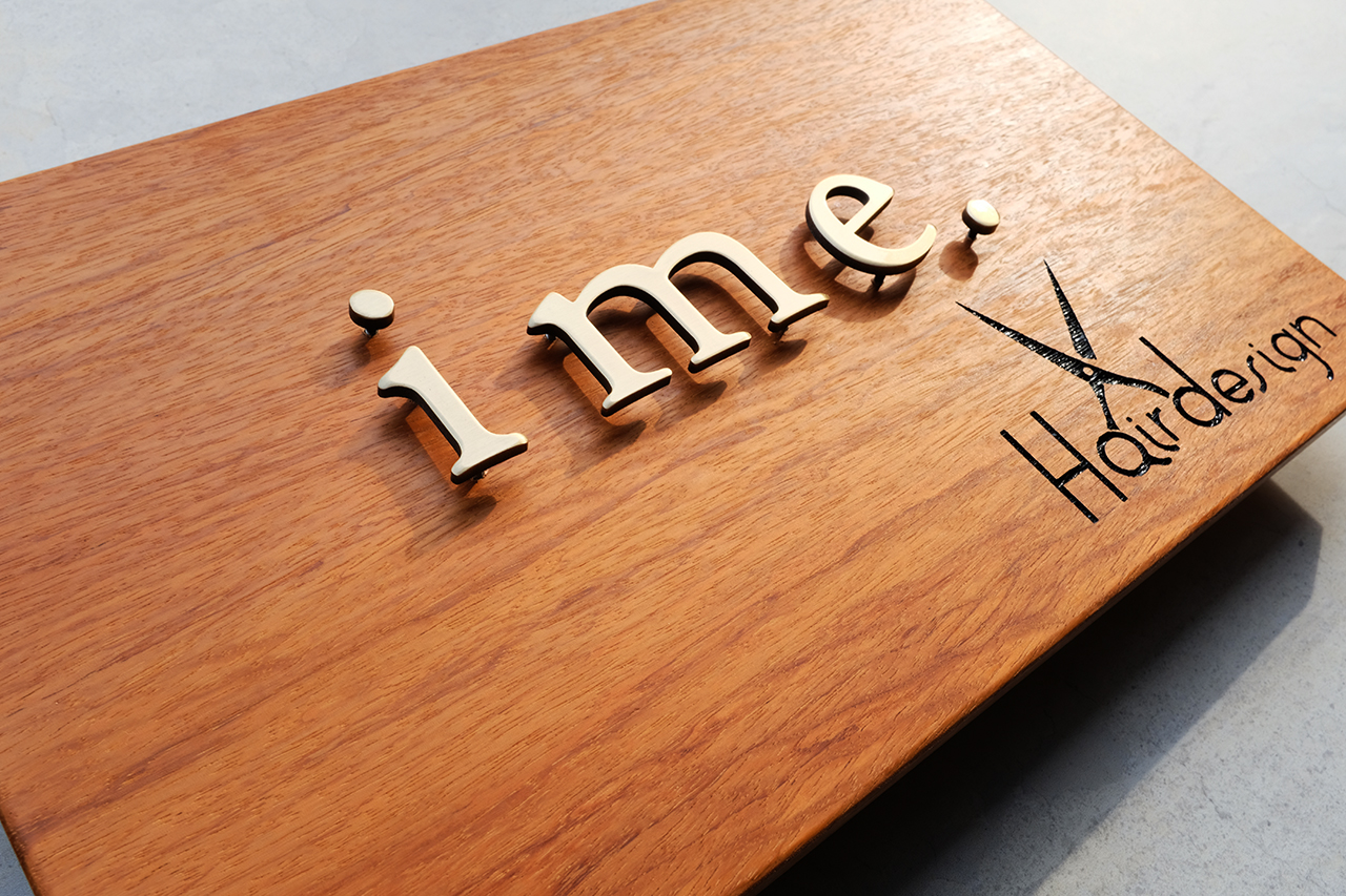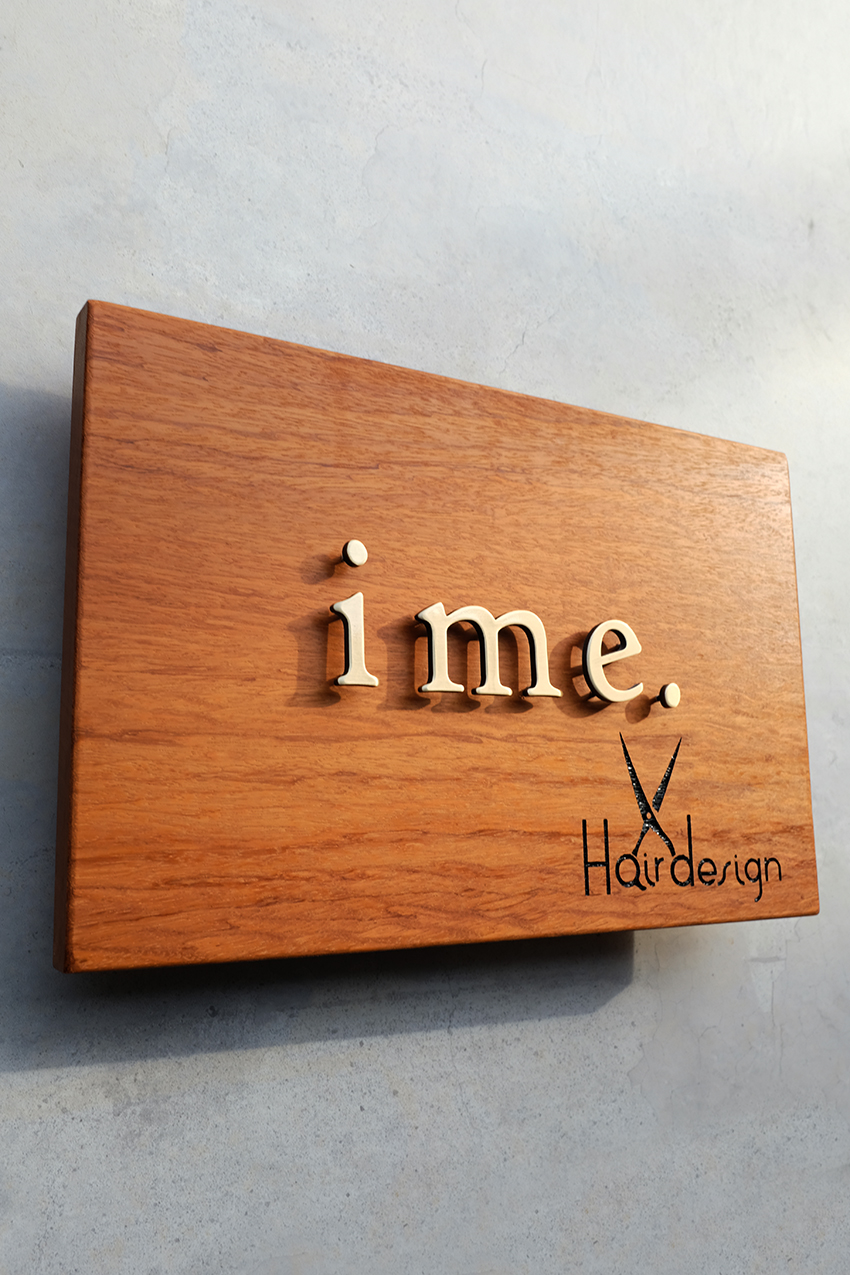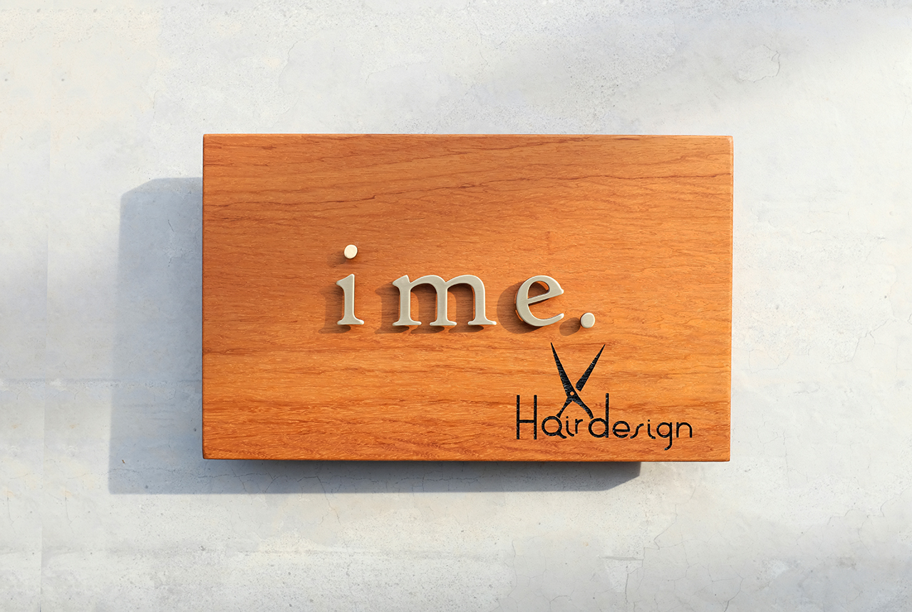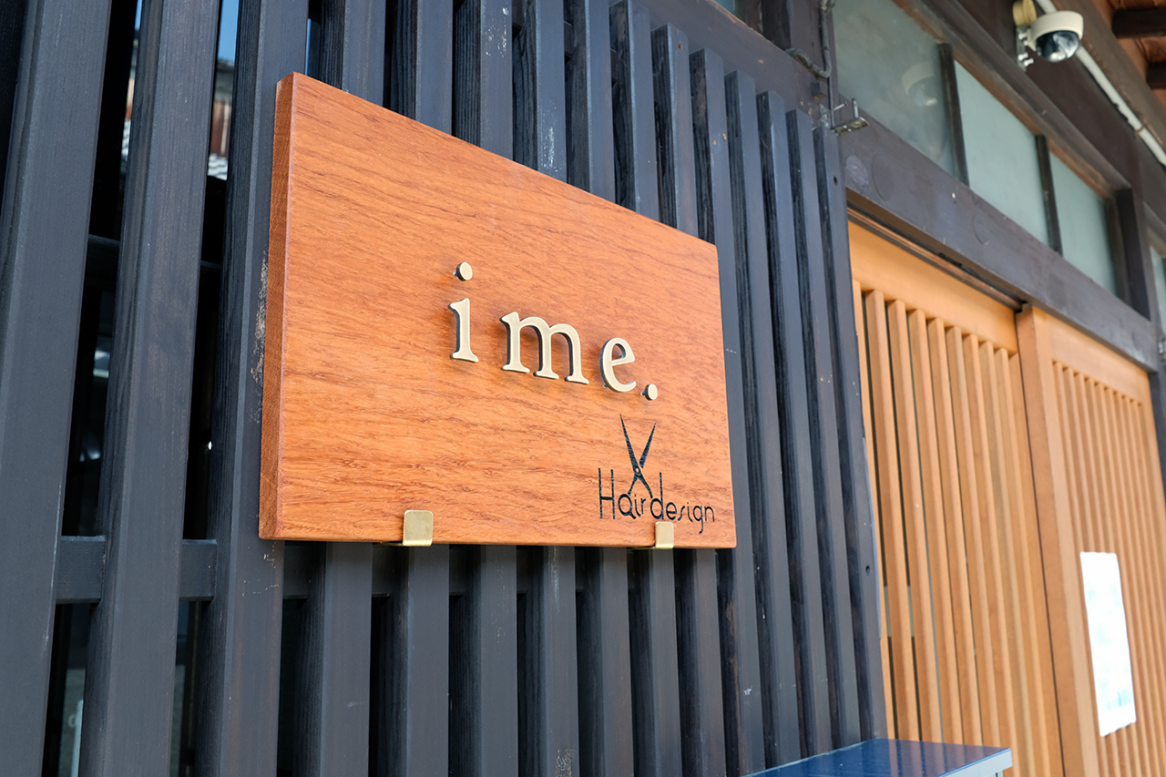 古民家をリノベーションした美容室『ime.hair design』の看板です