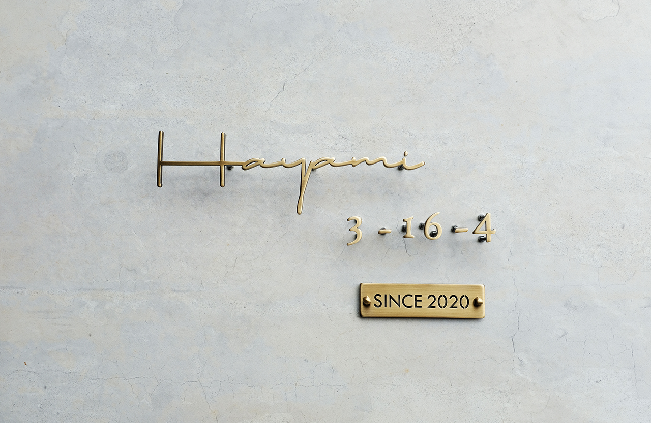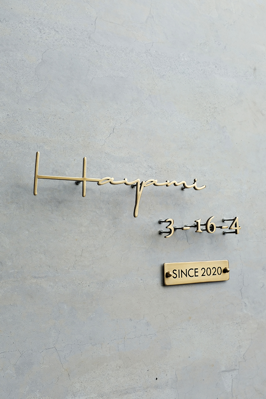 真鍮製のハウスナンバーとsince2020のプレートは表札サイズに合わせてデザイン