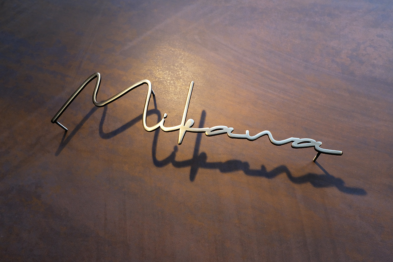 いぶし仕上げの真鍮切り文字表札