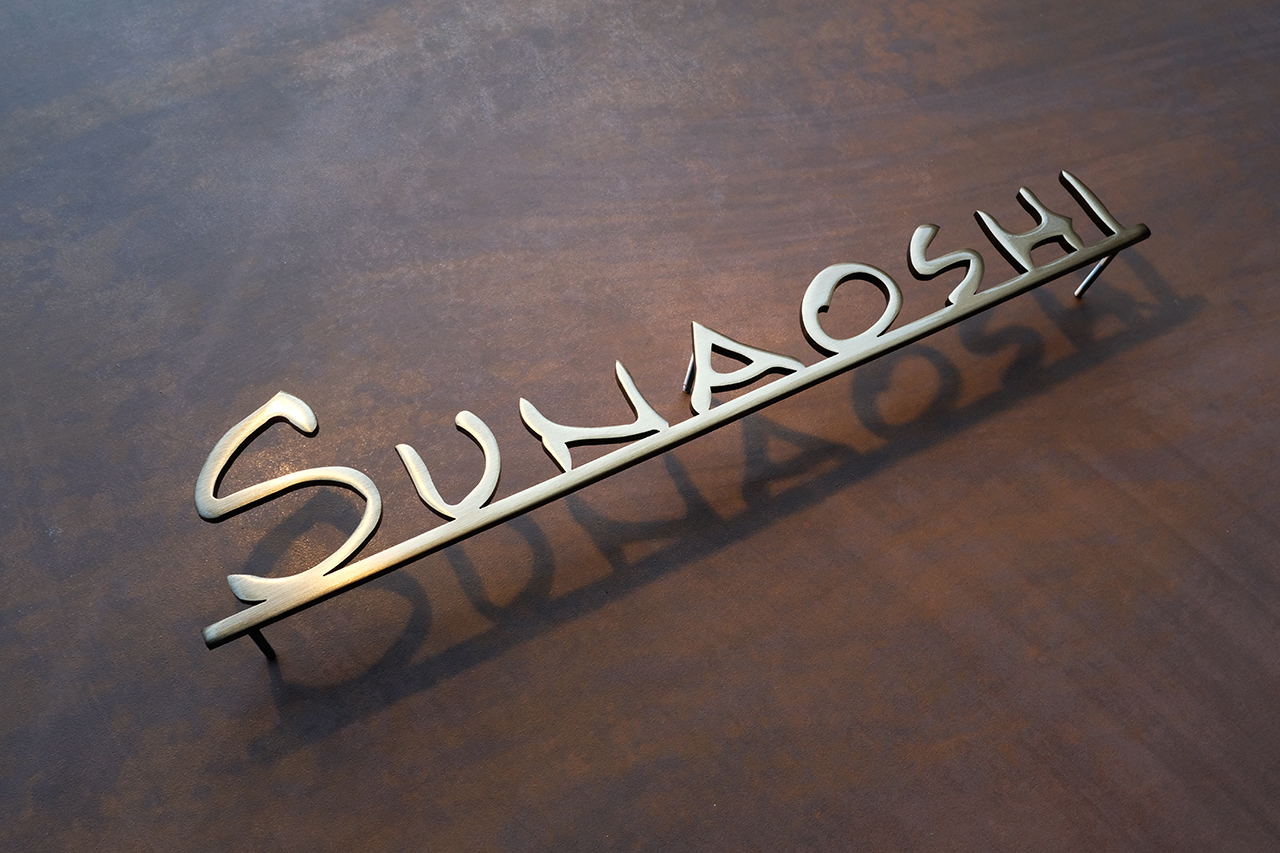 いぶし仕上げの真鍮切り文字表札