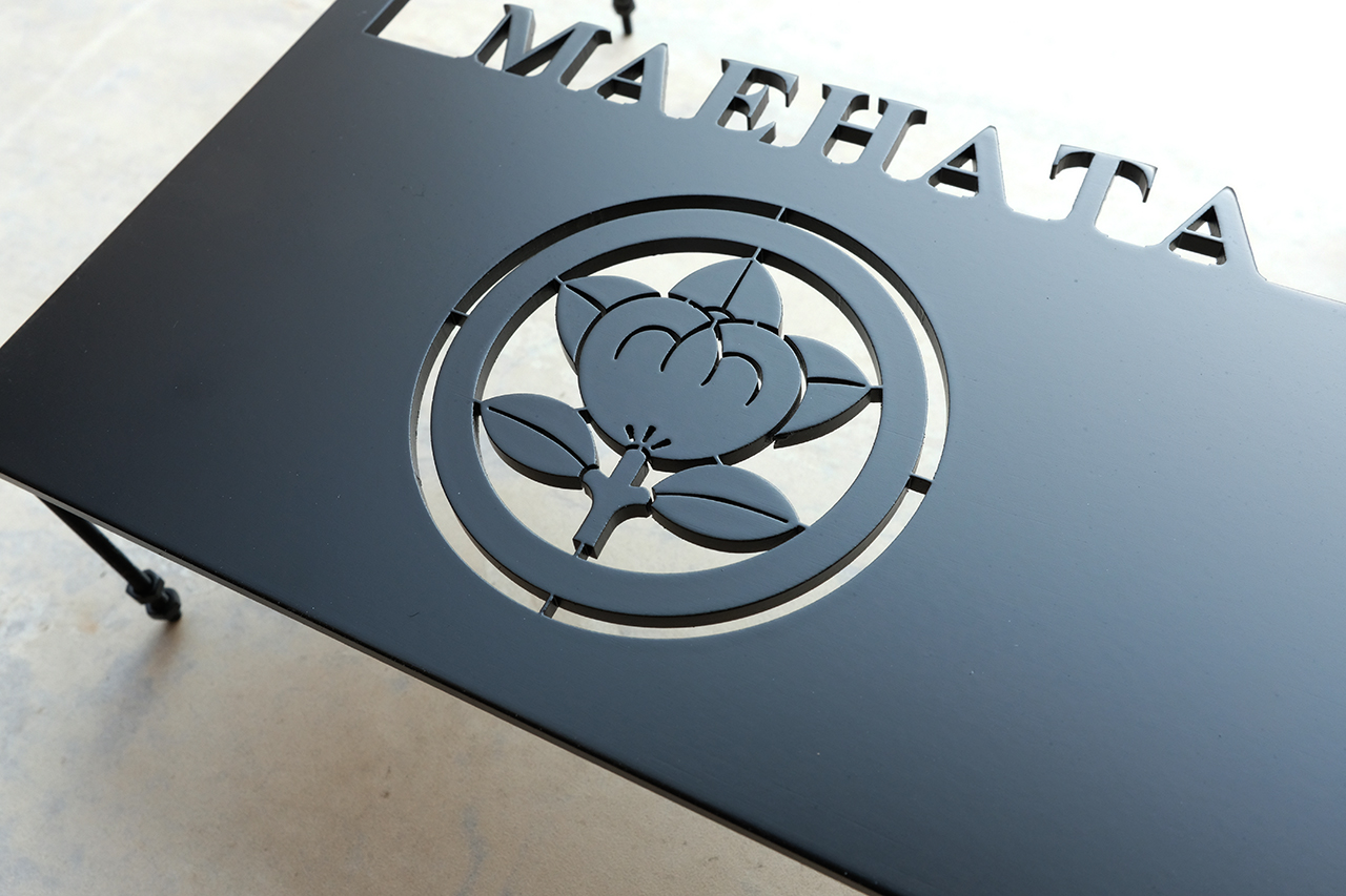 家紋『丸に橘(たちばな)』を表札にデザイン、精密加工で切り抜きました