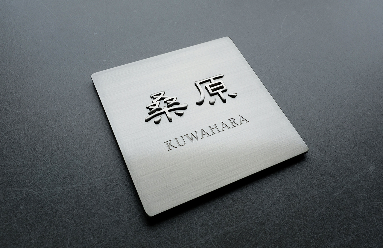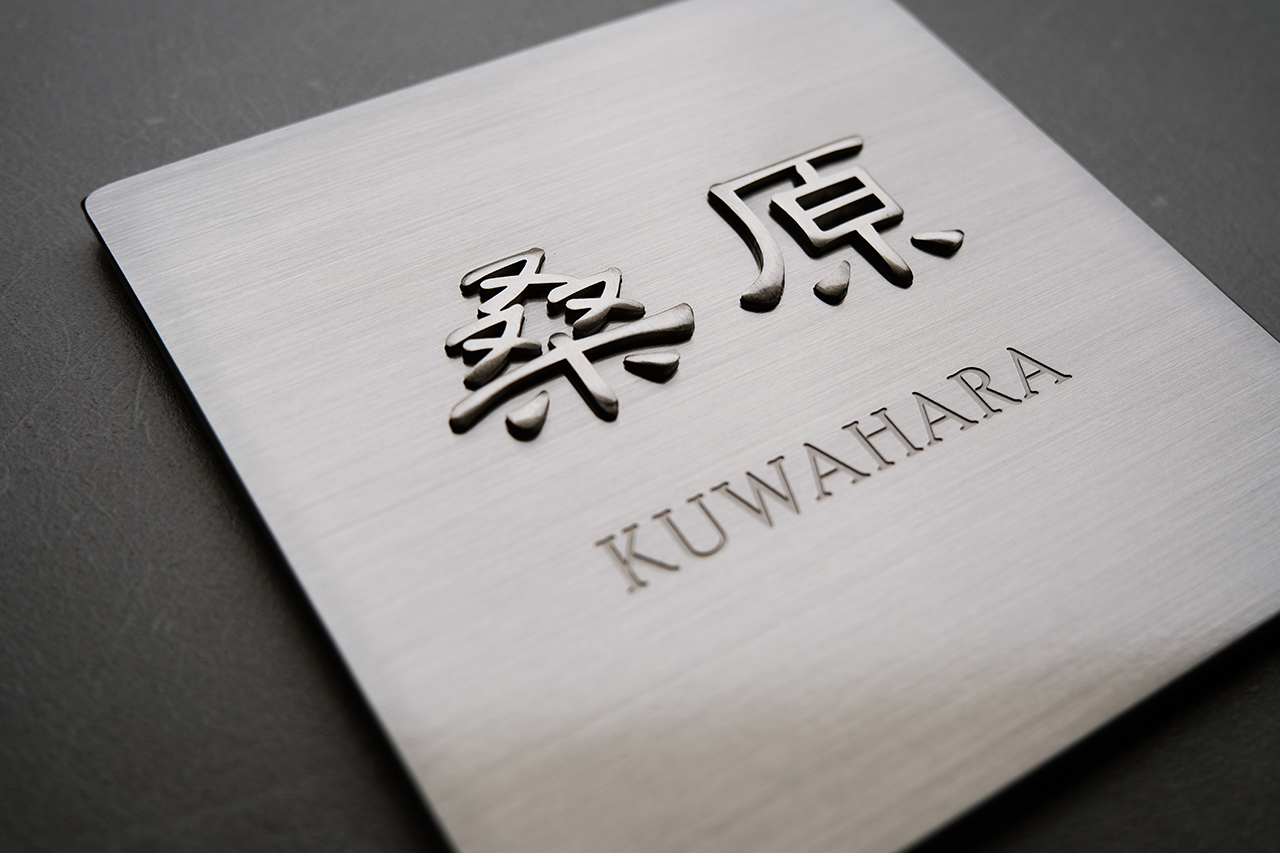 ベースは横に漢字は縦のヘアーライン研磨仕上げすることによって見る角度によって表情が変わります