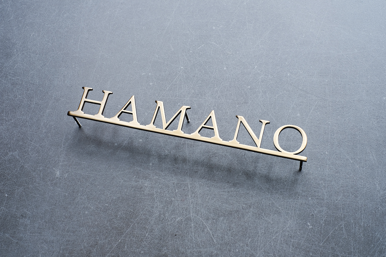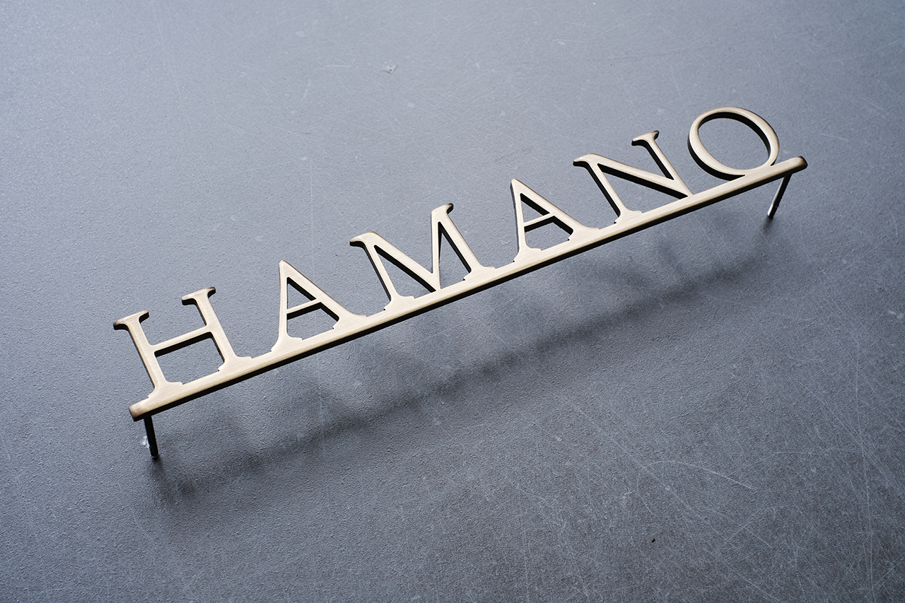 いぶし仕上げの真鍮切り文字表札