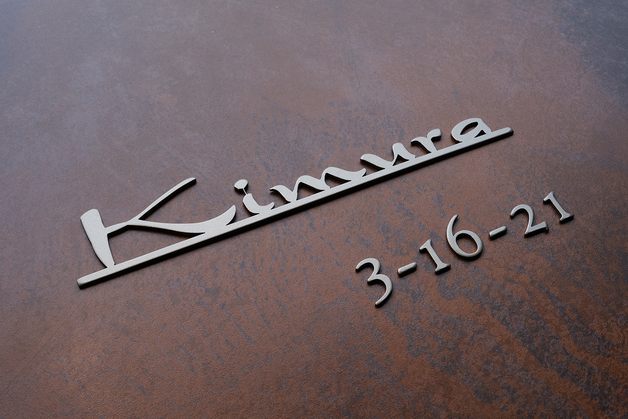 家の和風な要素に合わせて、マットゴールド、こちらの字体で作っていただきました。家の雰囲気ととても調和がとれていて大満足です。