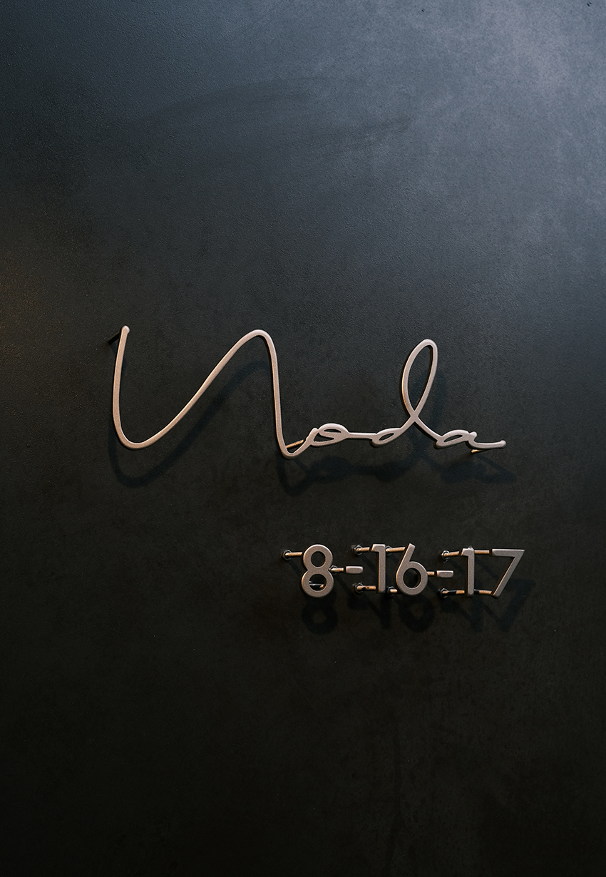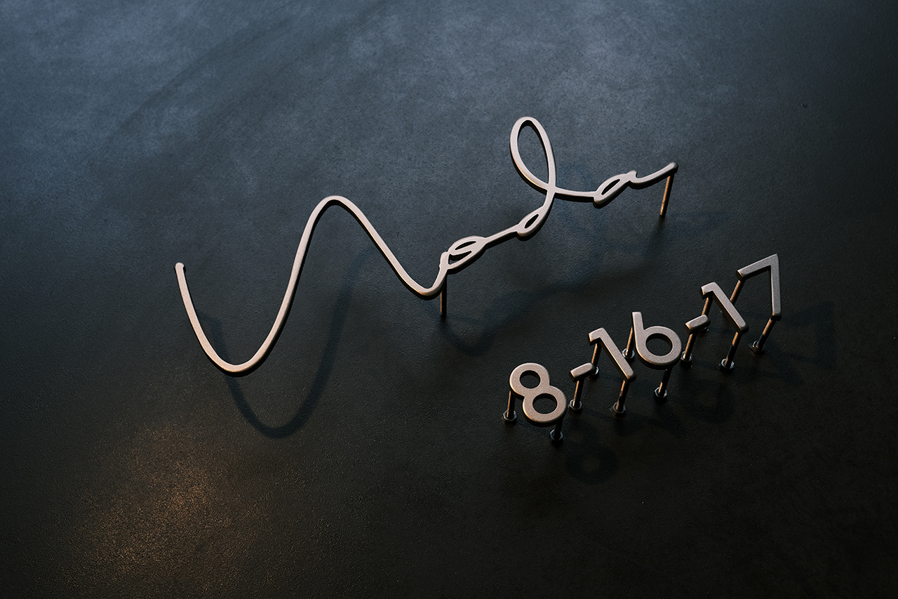 マットゴールドのステンレス切り文字表札とハウスナンバー
