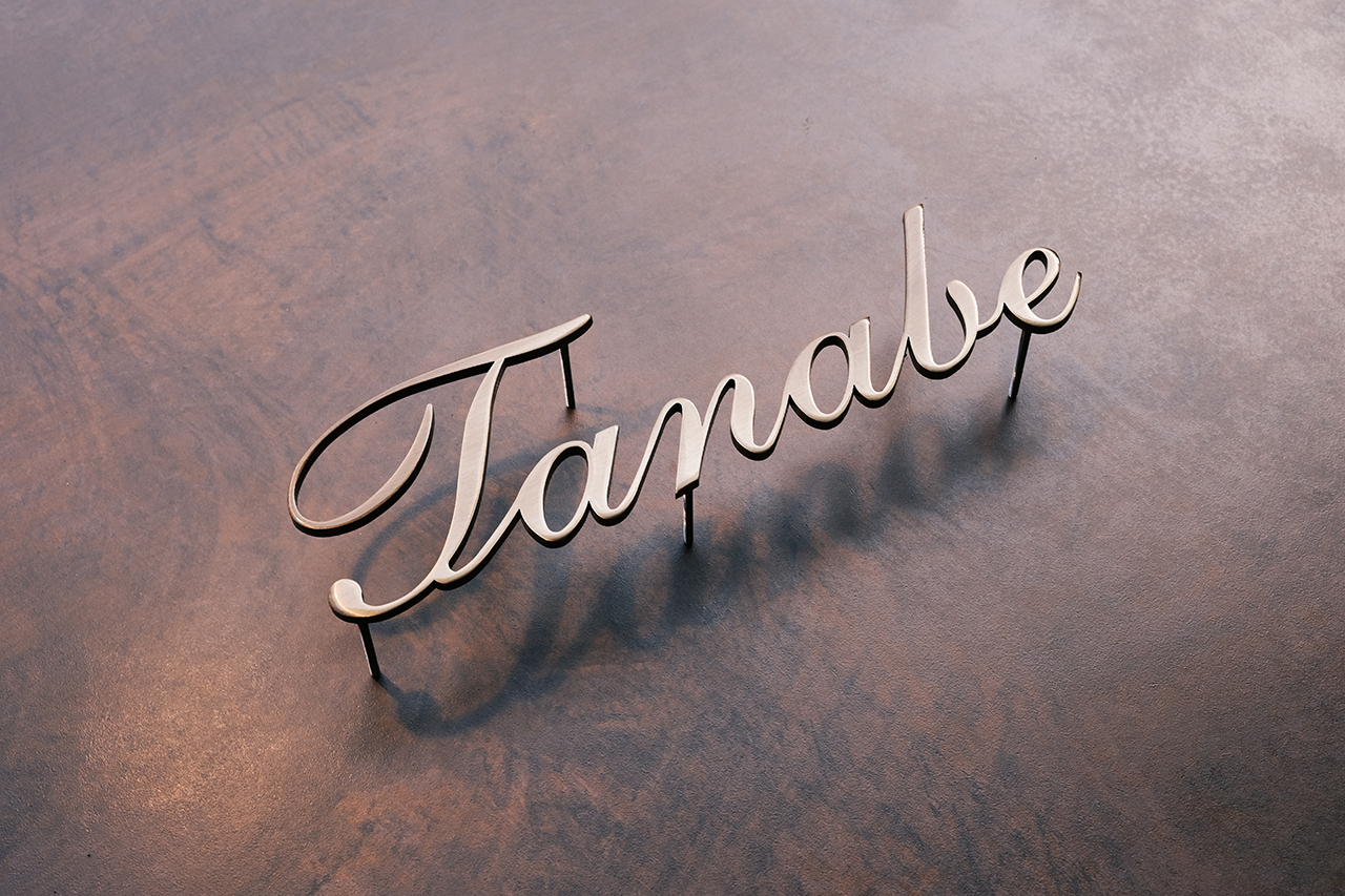 いぶし仕上げの真鍮切り文字表札
