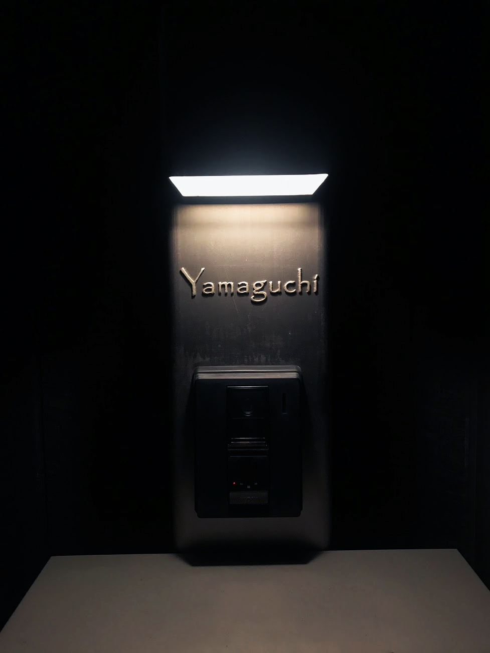 機能門柱用に製作したステンレス切り文字表札 両面テープ固定