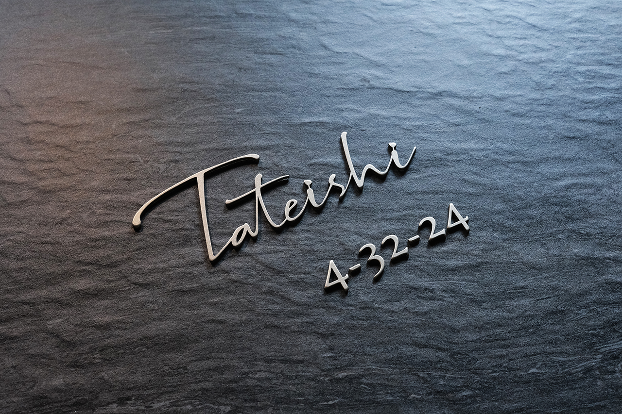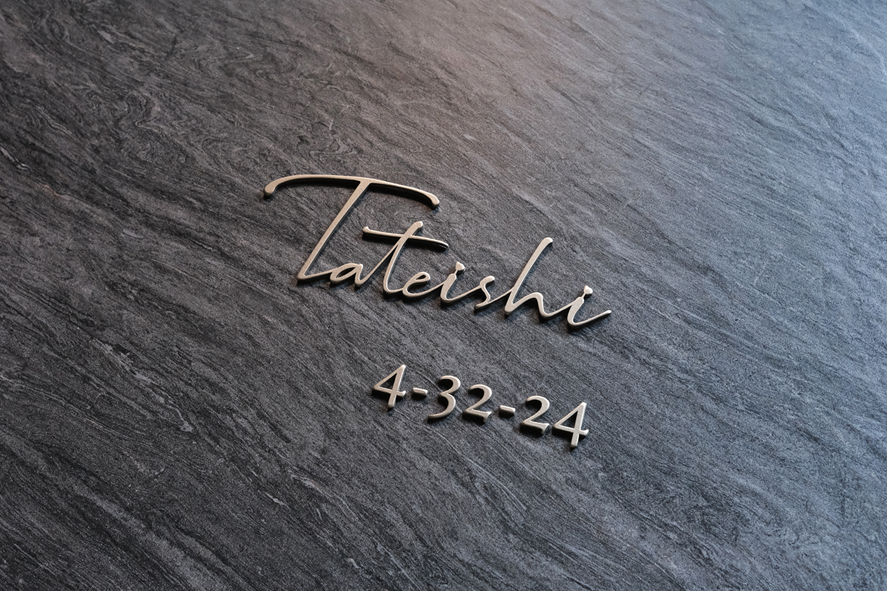 機能門柱用のステンレス切り文字表札とハウスナンバー