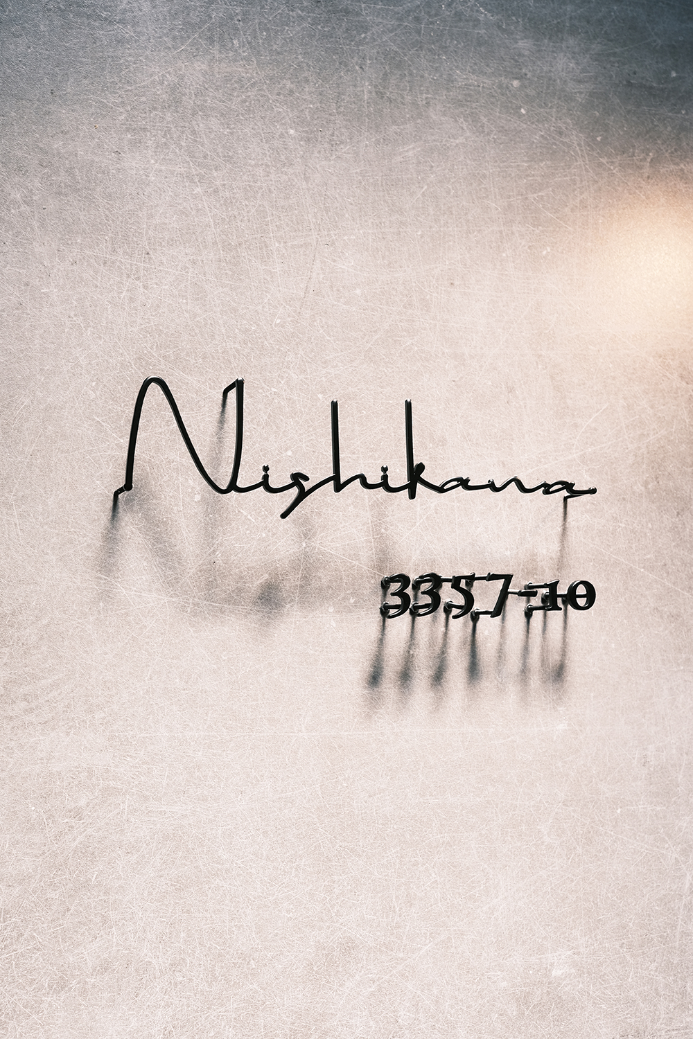 マットブラック焼付塗装のステンレス切り文字表札とハウスナンバー