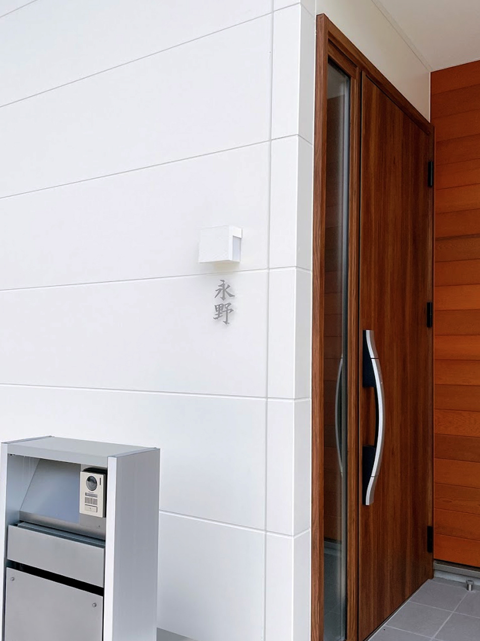 白壁×ステンレス(シルバー色)×漢字表記×浮き文字。