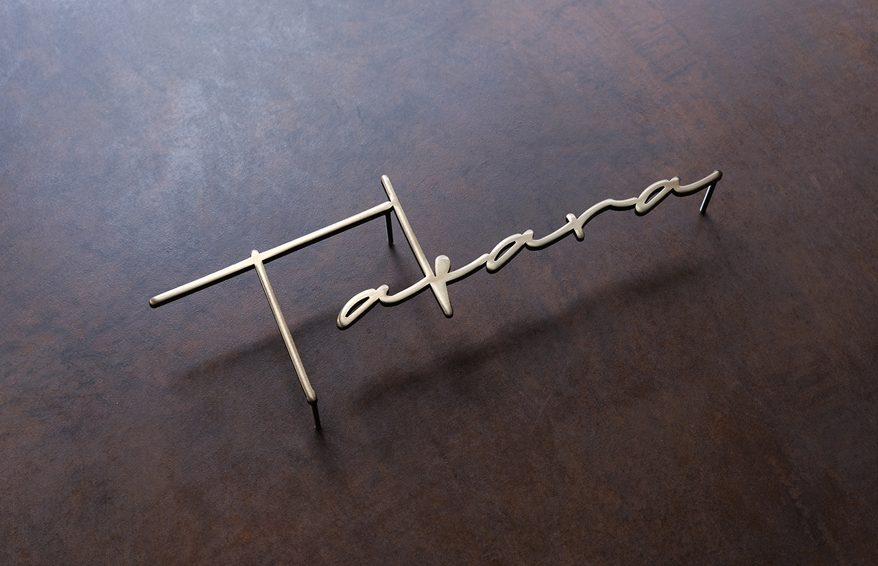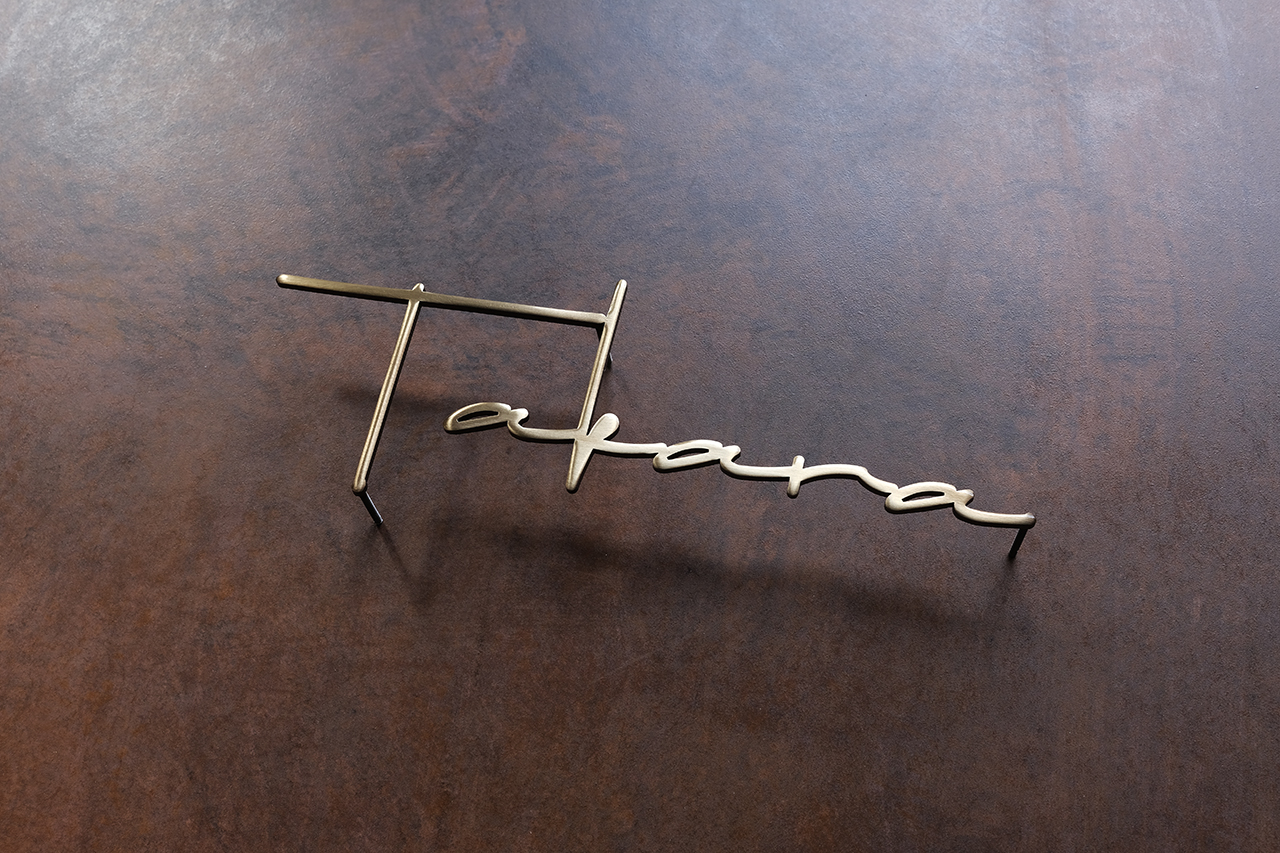 いぶし仕上げの真鍮切り文字表札
