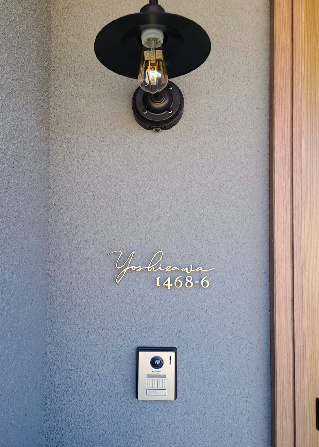 フォントにこだわってデザインしました 表札幅 260mm ハウスナンバー 130mm