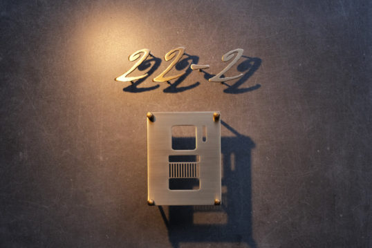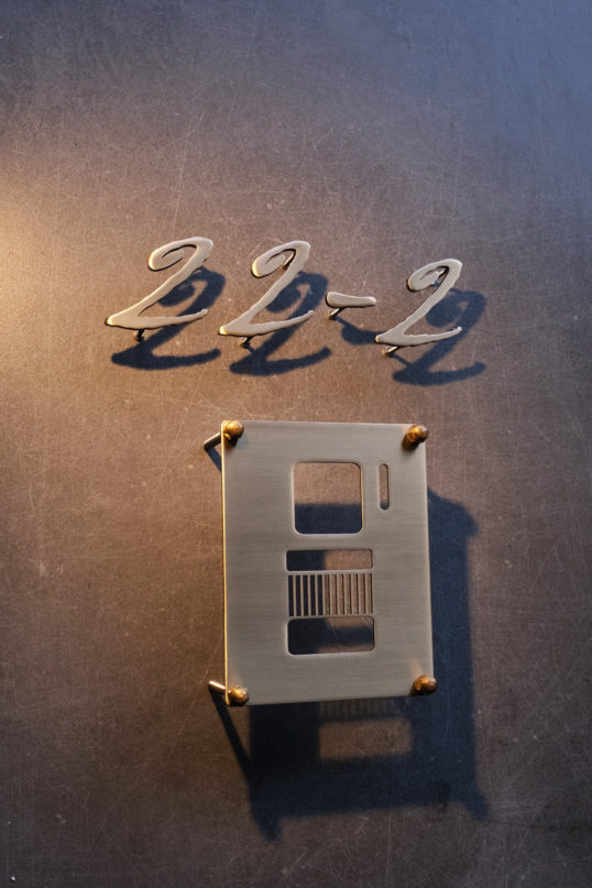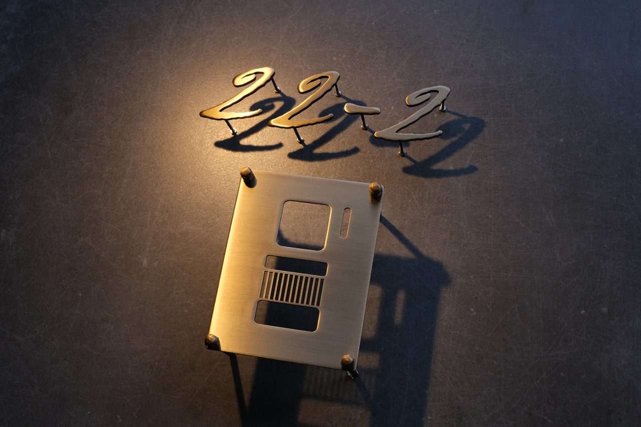 いぶし仕上げのハウスナンバーとインターホンカバー