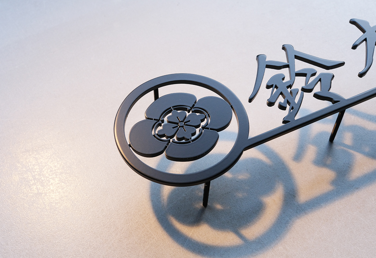 家紋『丸に木瓜(もっこう)』を表札にデザインしたステンレス切り文字表札