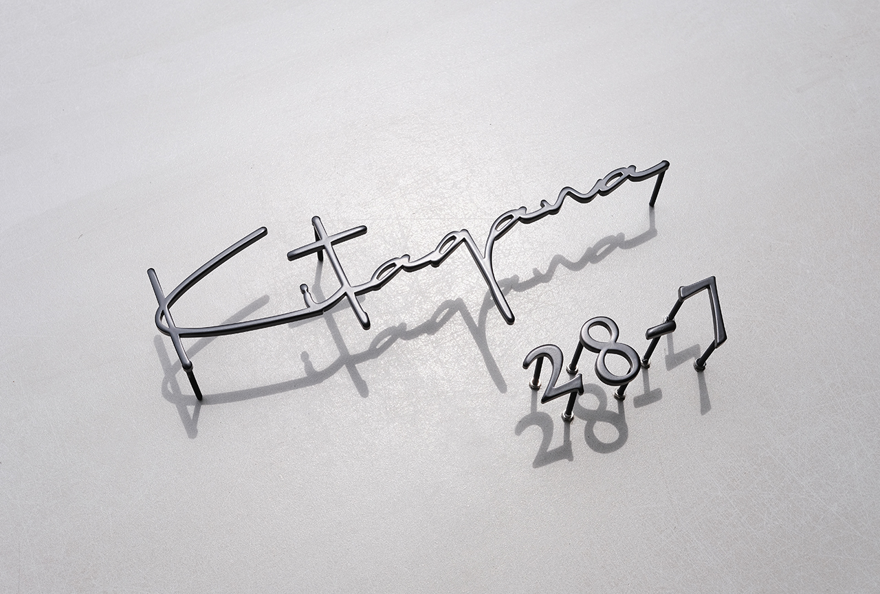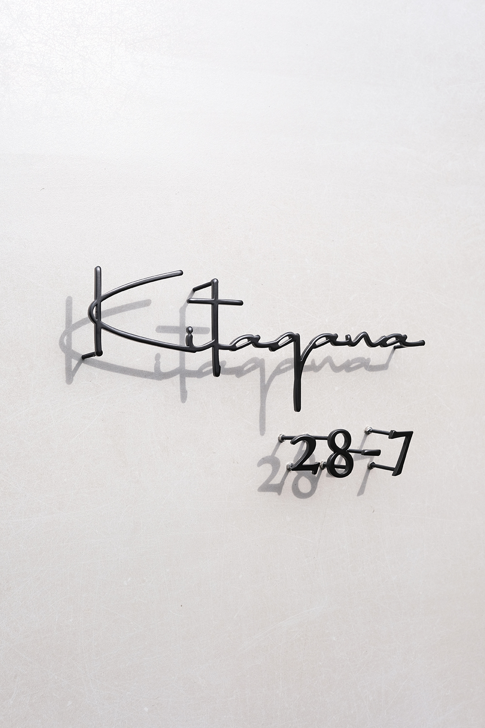 マットブラック焼付塗装のステンレス切り文字表札とハウスナンバー