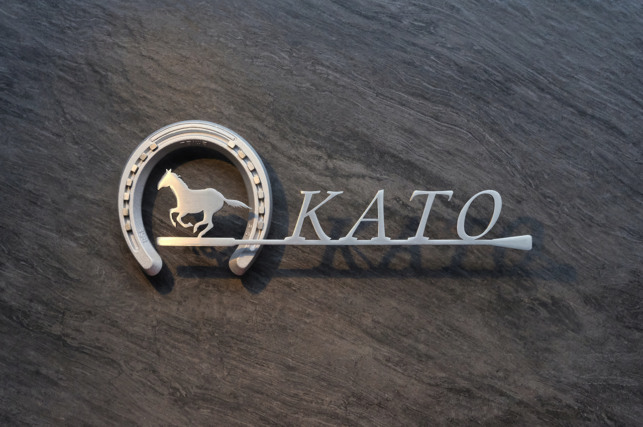 競走馬の未使用の本物の蹄鉄を使って製作した創作表札