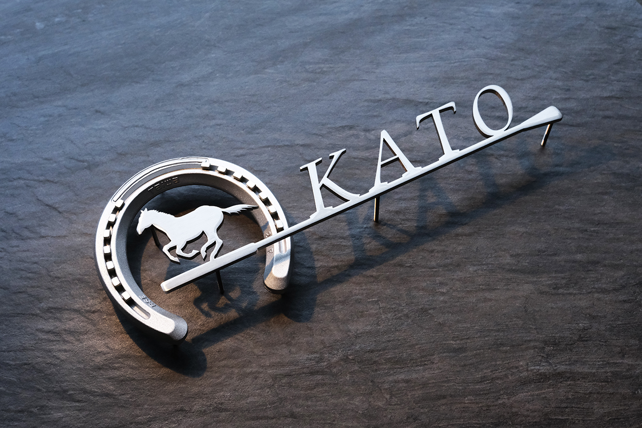蹄鉄は釘も本物(鉄製、マットゴールド塗装)を使い、マットシルバーの焼付塗装