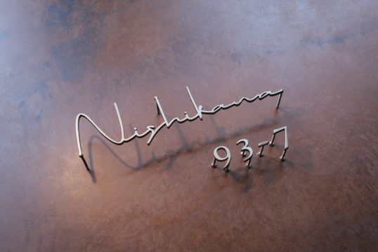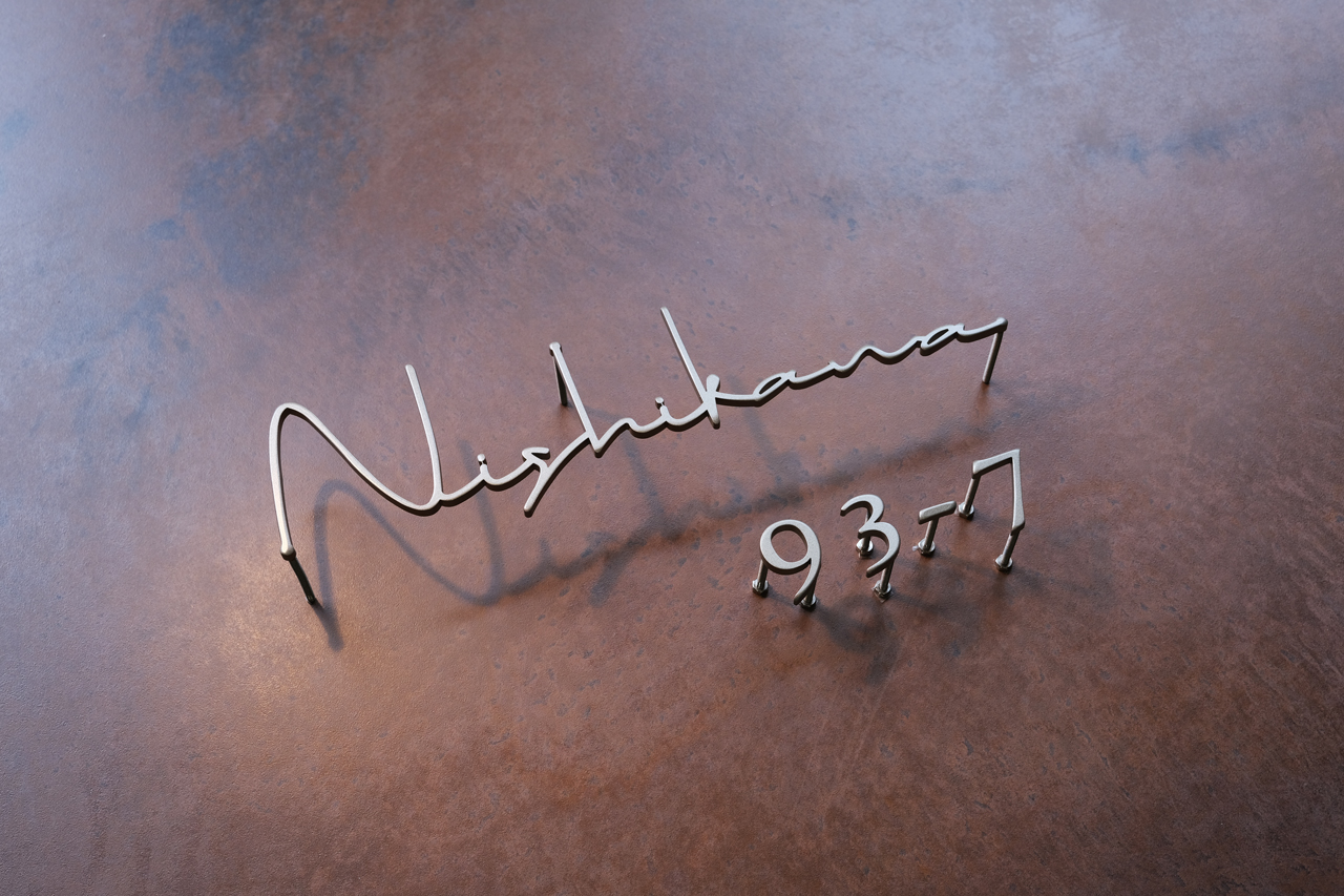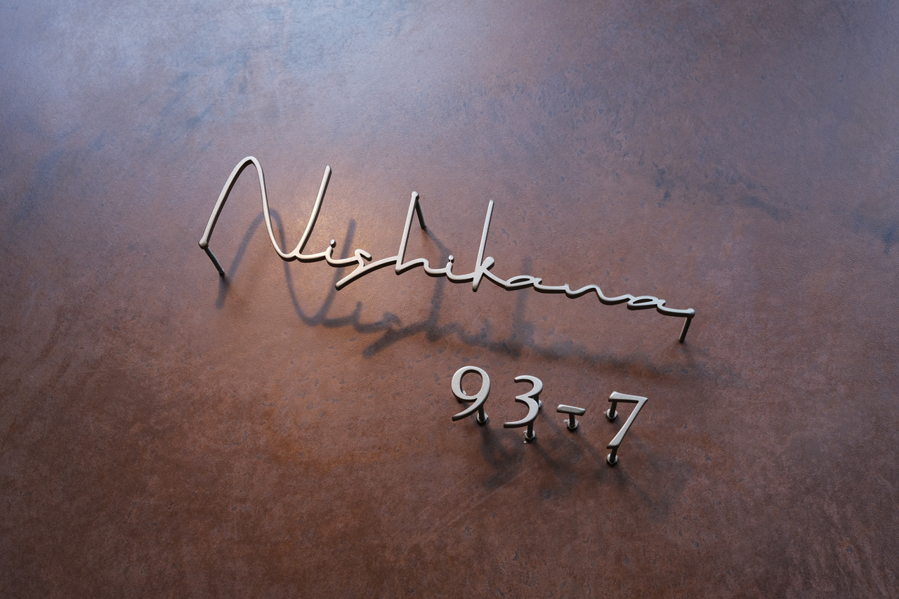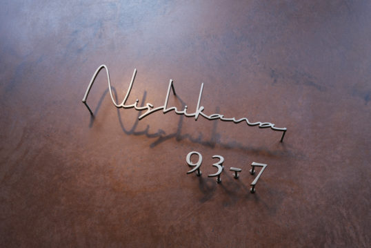 マットゴールドのステンレス切り文字表札とハウスナンバー