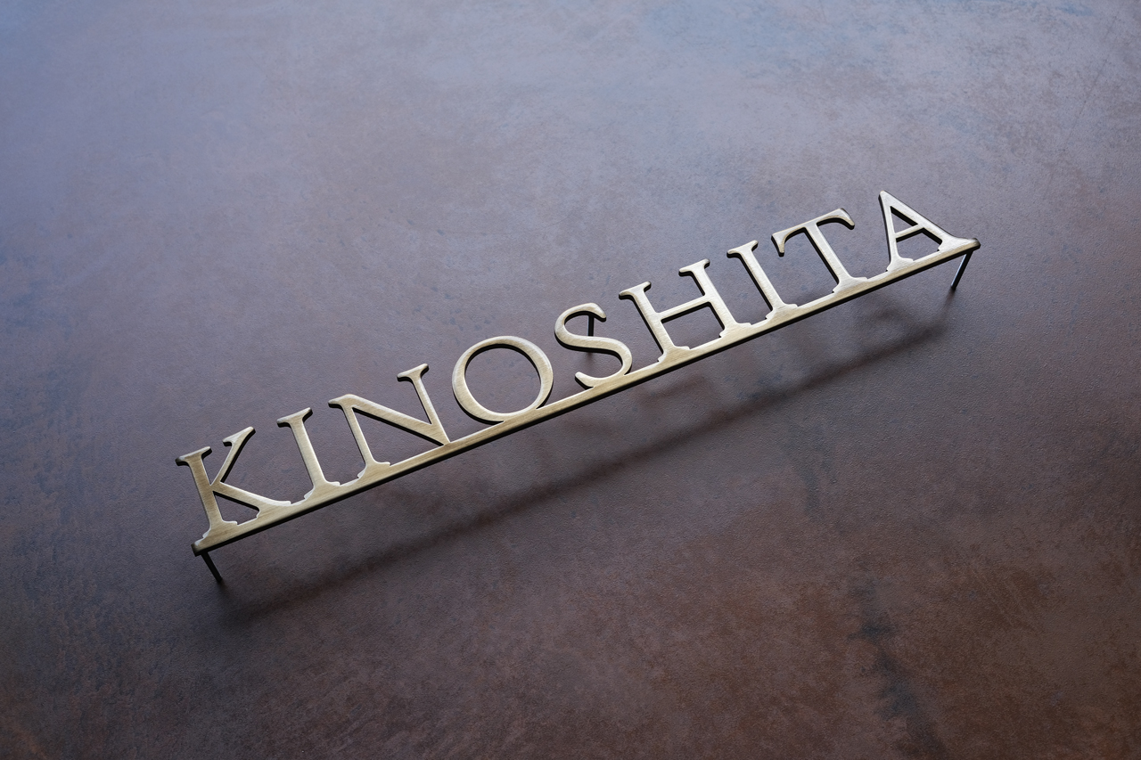 いぶし仕上げの真鍮切り文字表札