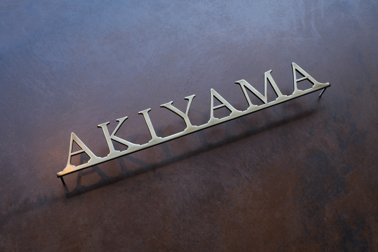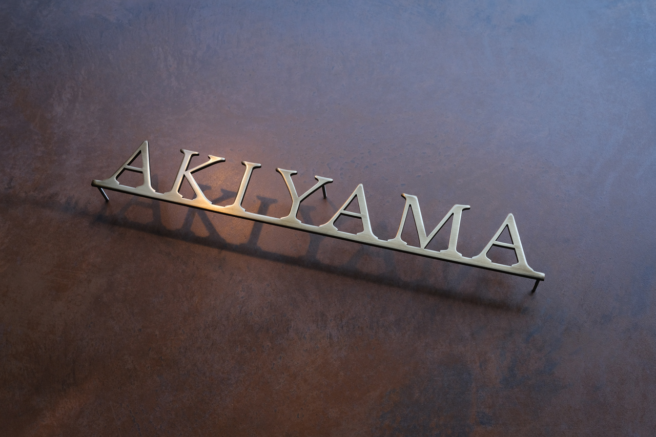 いぶし仕上げの真鍮切り文字表札