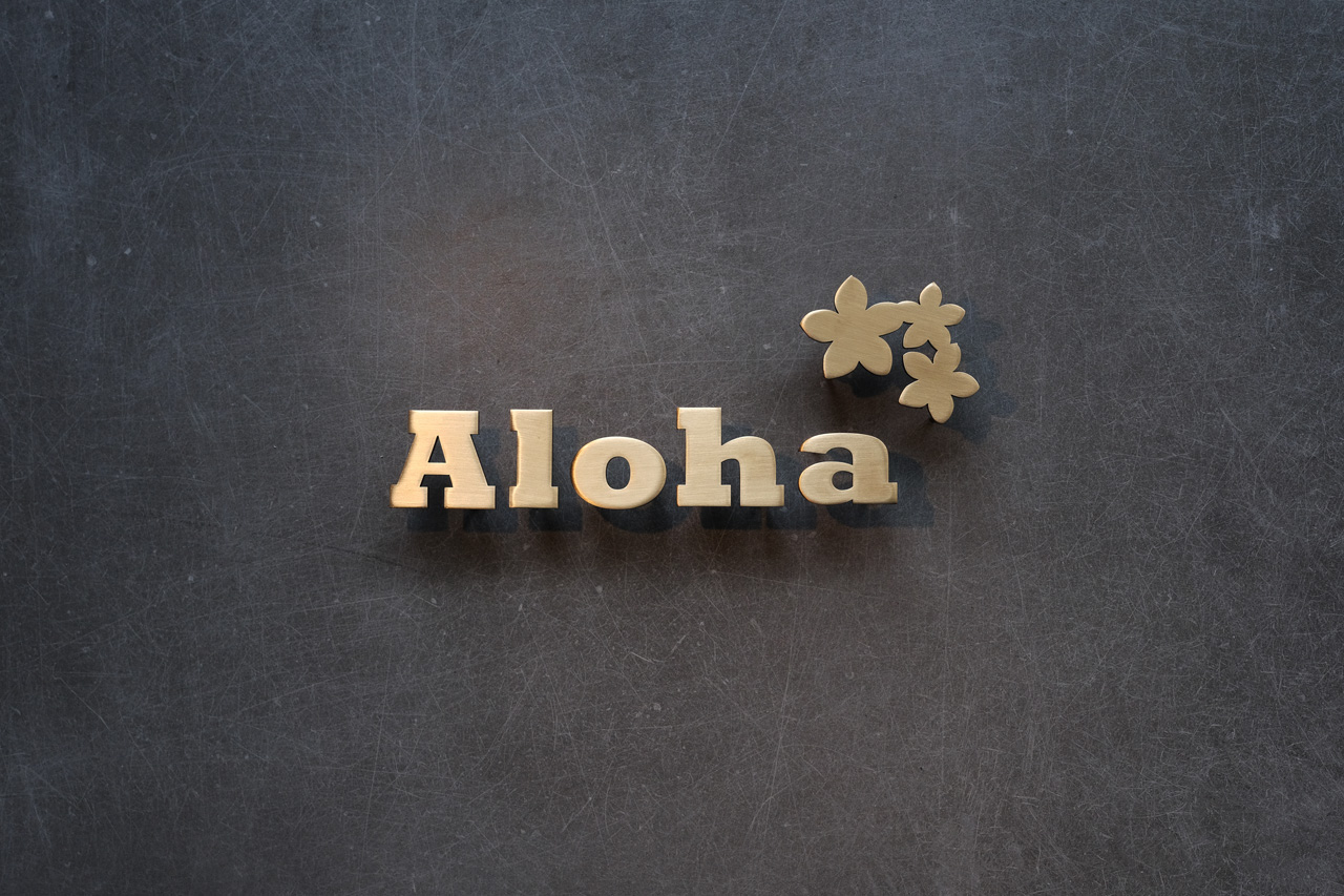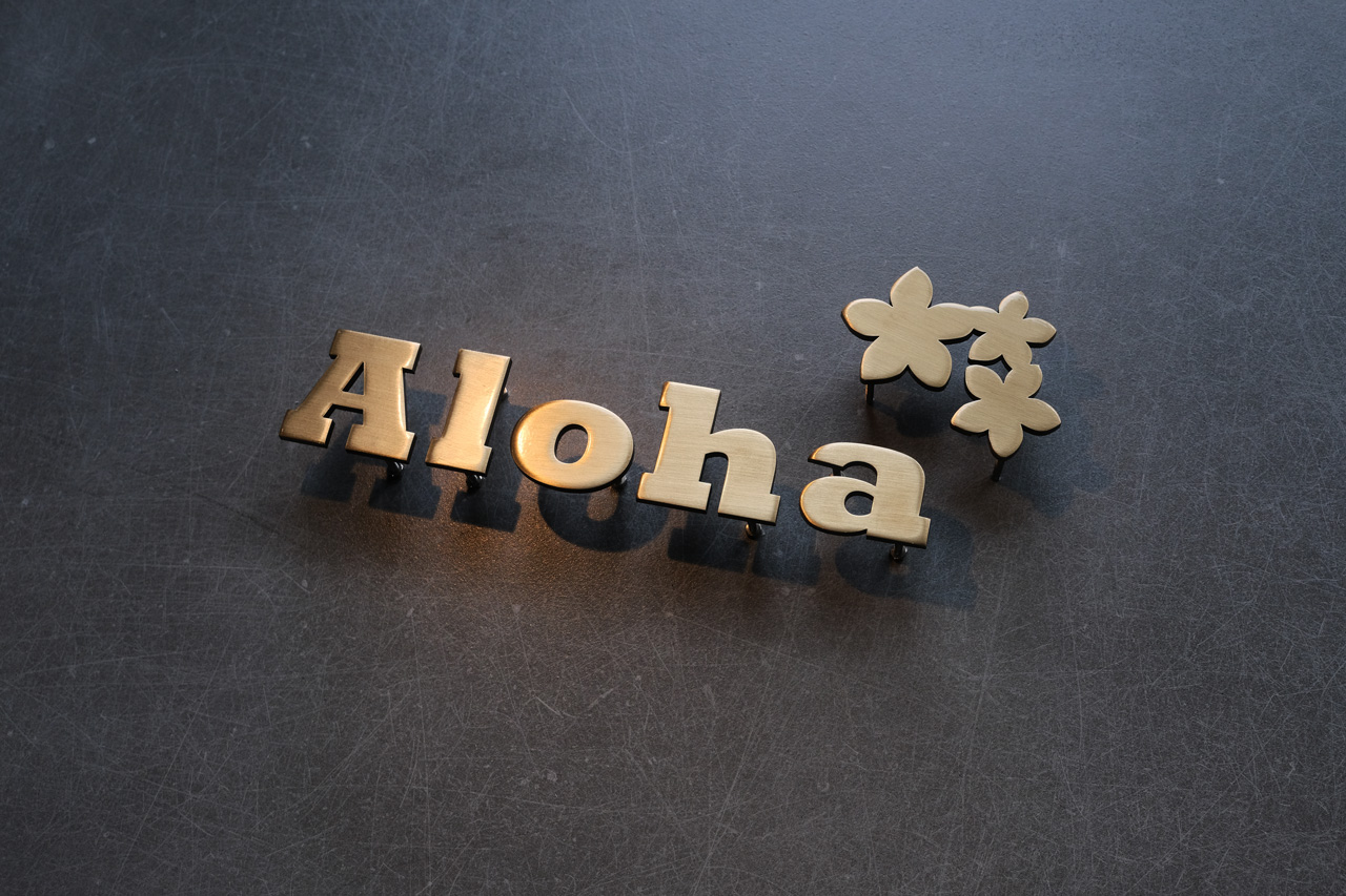 コンクリート土間に埋め込む真鍮レター ALOHA