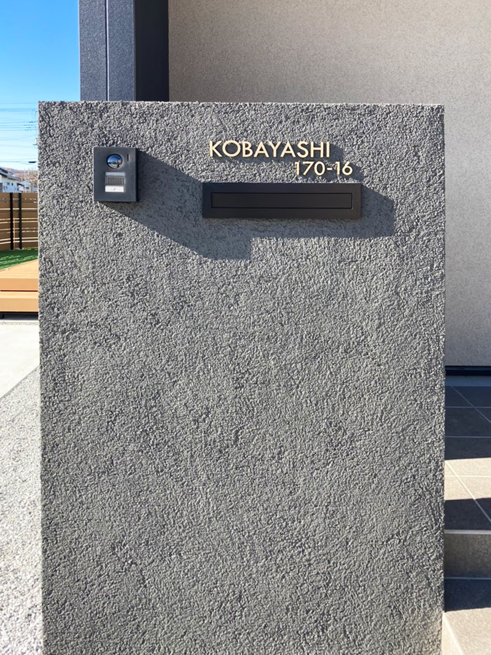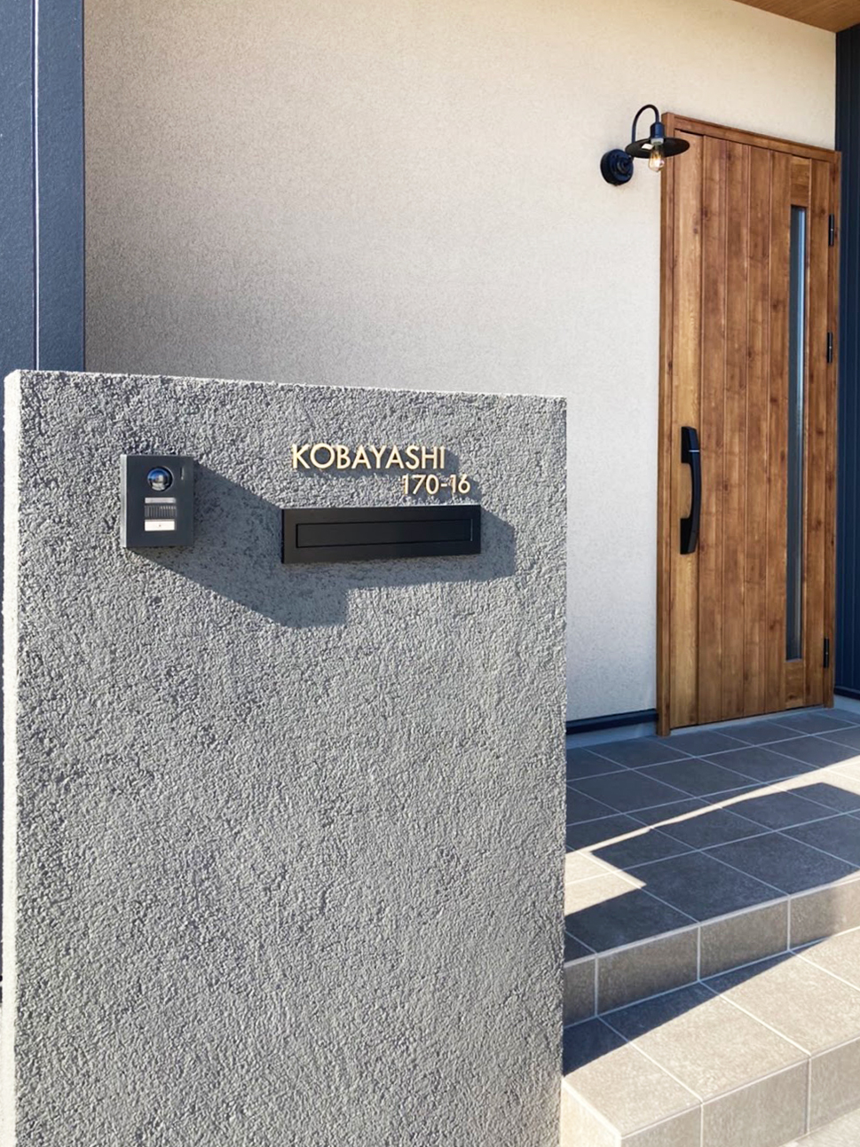門柱に表札がとても映えます!カッコいいです!外構屋さん、工務店さん、お隣の大工さんにも大変好評でした!ありがとうございました!