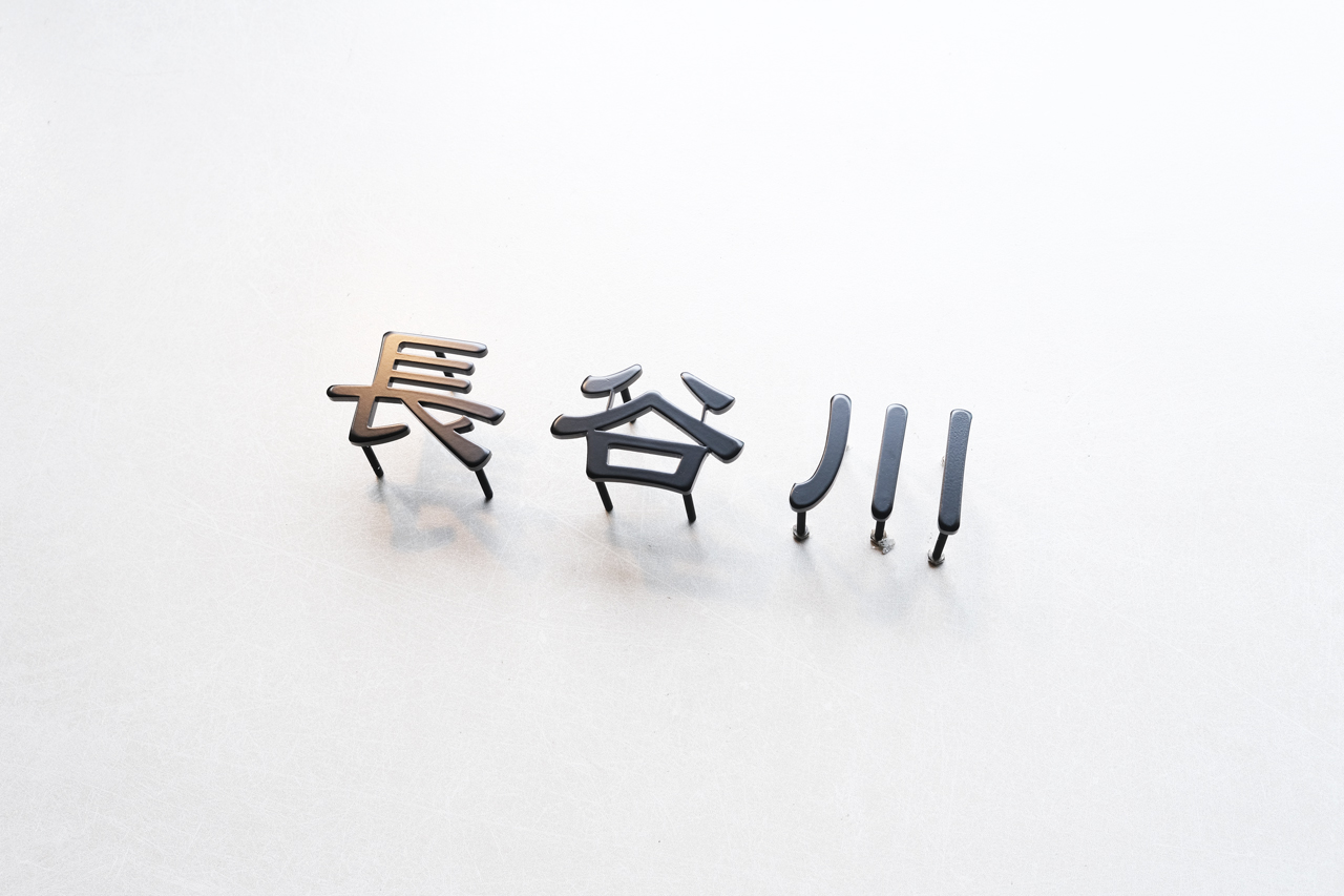 ステンレス切り文字表札 マットブラック 独立文字 2022/9/30 金曜日 by miyasu ステンレス切り文字表札 浮き文字ブラック塗装ツヤ消しマットブラック独立文字焼付け塗装ステンレス切り文字 隷書体でデザインしたステンレス切り文字表札(独立文字) 玄関の写真を拝見してご提案しました 表札幅21cm 表面は研磨の後、マットブラック焼付け塗装仕上げ 1cmほど浮かせて固定すると影が出来て綺麗に映ります LINEで打ち合わせ 石川県に送ります 長谷川 お問い合せ用URL : このページで紹介した作品についてのお問い合わせは、上記URLをコピーして 『お問い合せ』のぺージの記入欄に上記「お問い合せ用URL」を貼り付けてご連絡ください。 ご質問、見積依頼、ご注文についても『お問い合せ』のページからヒロノクラフト公式LINE及びメールでお願いします。 ※ご利用いただく端末によっては、コメント送信後にエラー表示されるなどのうまく反映されない場合がございます。 その場合はLINEにて、ご連絡ください。
