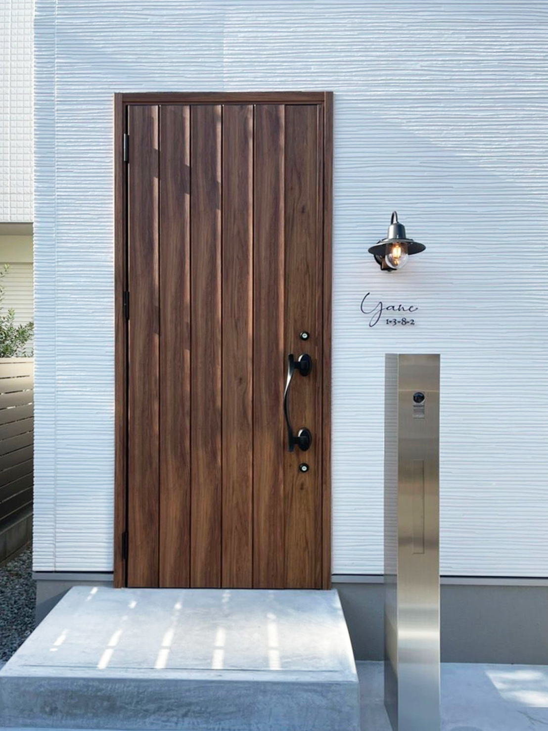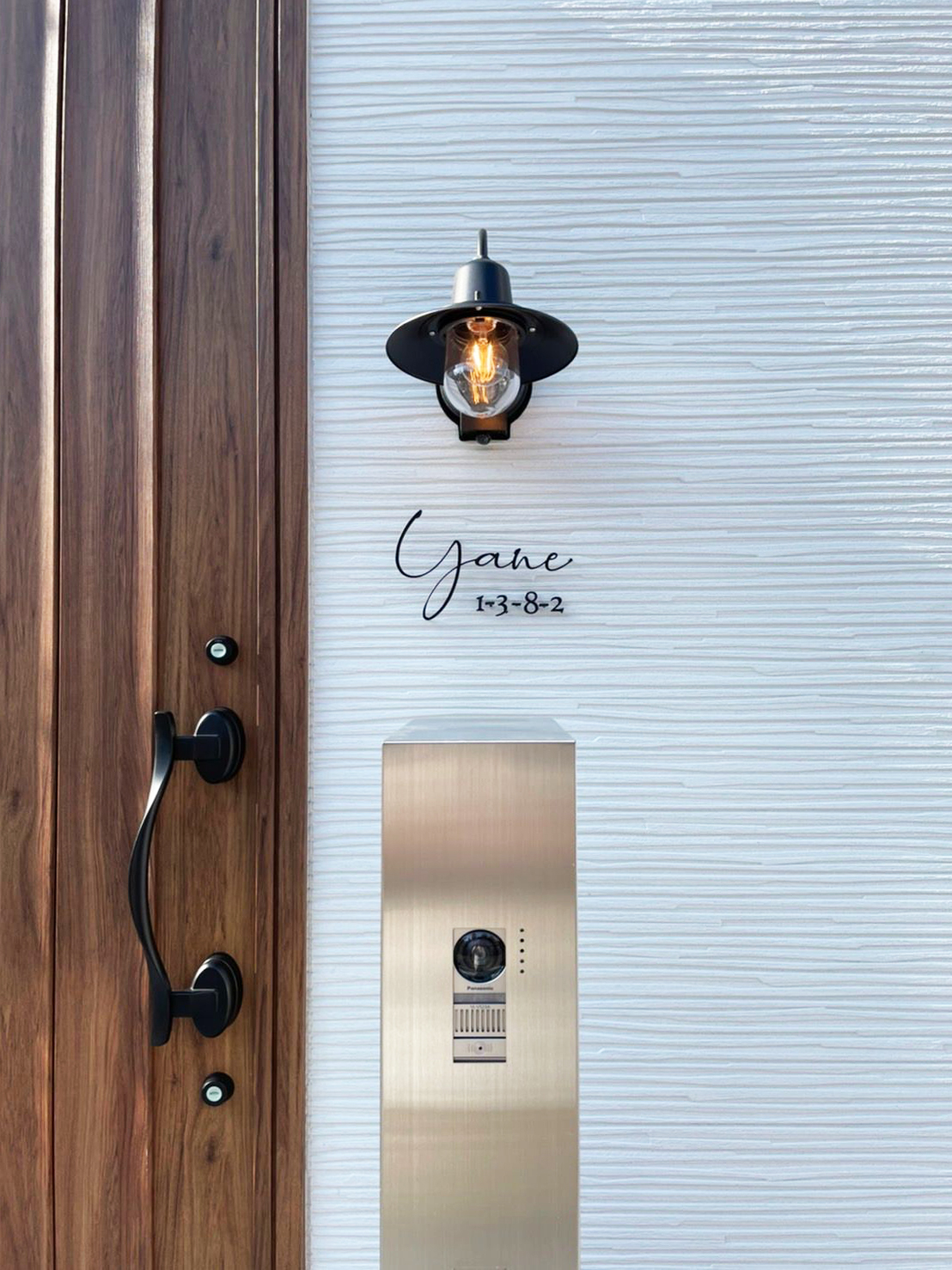 取付場所の写真を拝見してご提案しました 表札幅 250mm ハウスナンバー 130mm