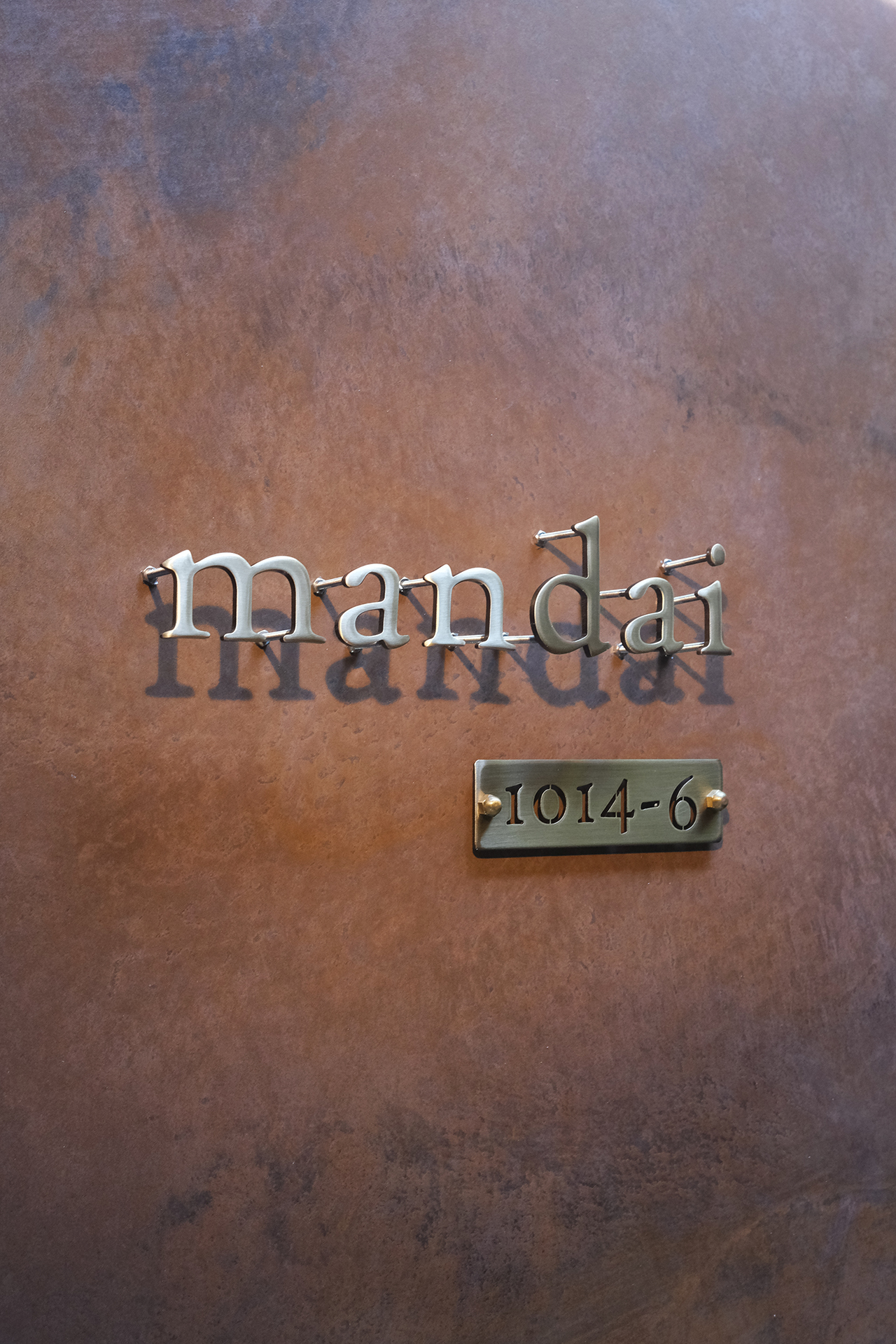 いぶし仕上げの真鍮切り文字表札と番地プレート
