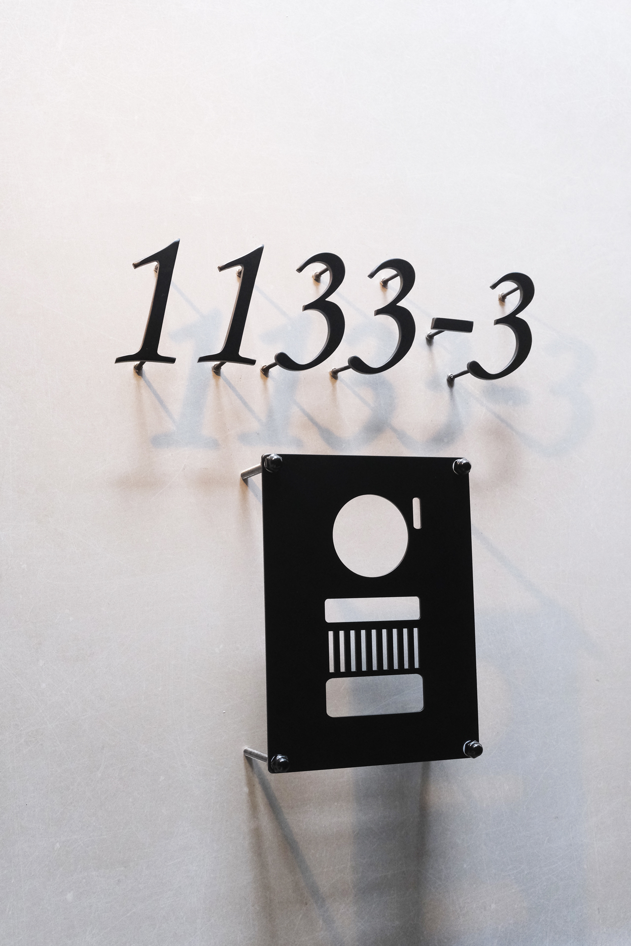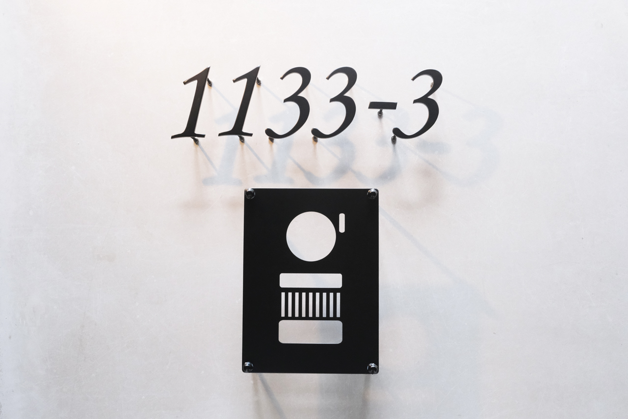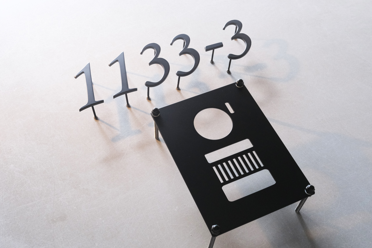 マットブラックのハウスナンバーとインターホンカバー