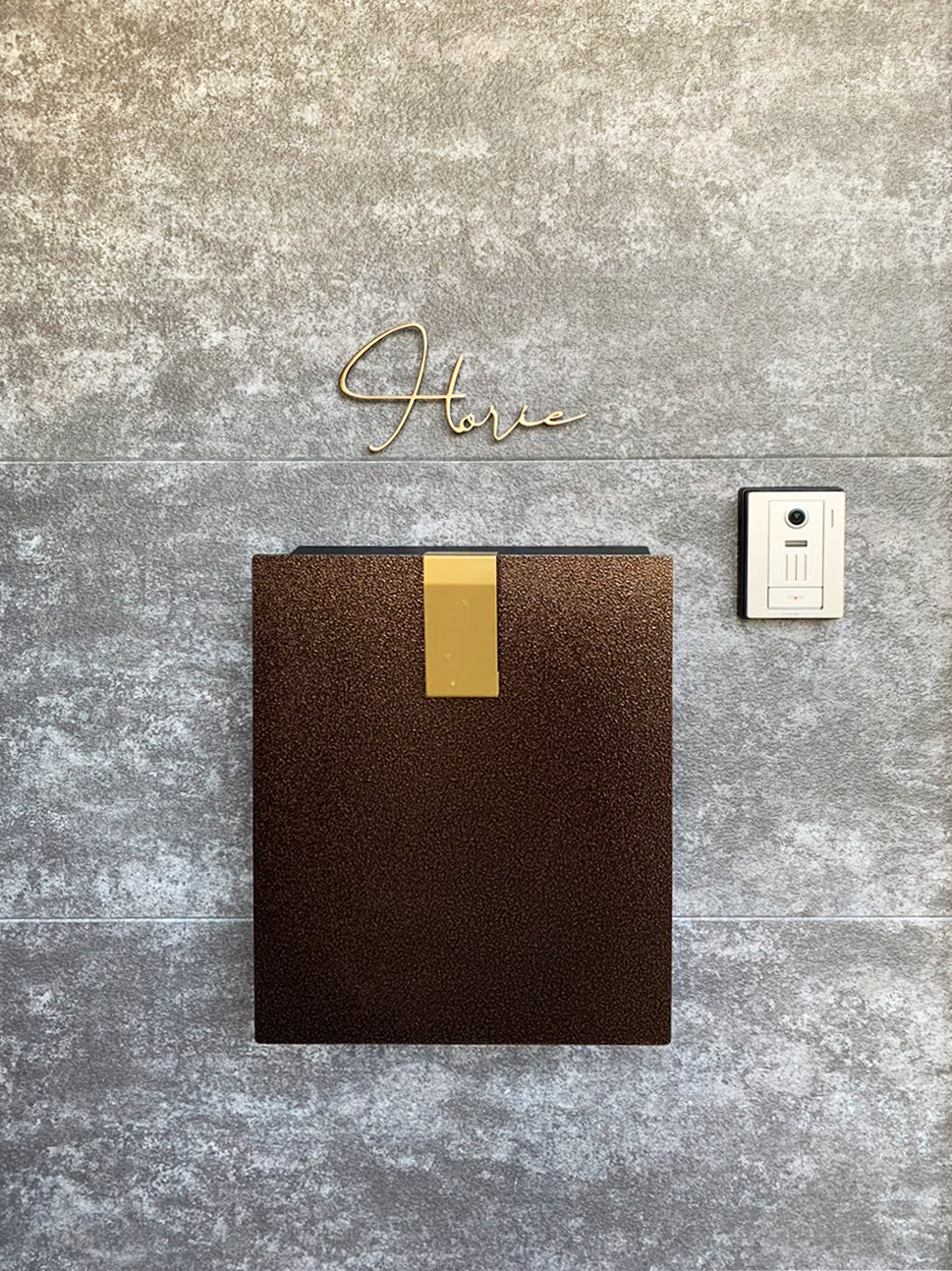いぶし仕上げの真鍮切り文字表札