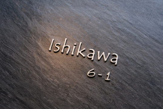 機能門柱用のステンレス切り文字表札とハウスナンバー