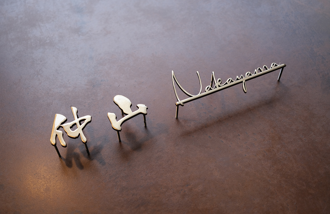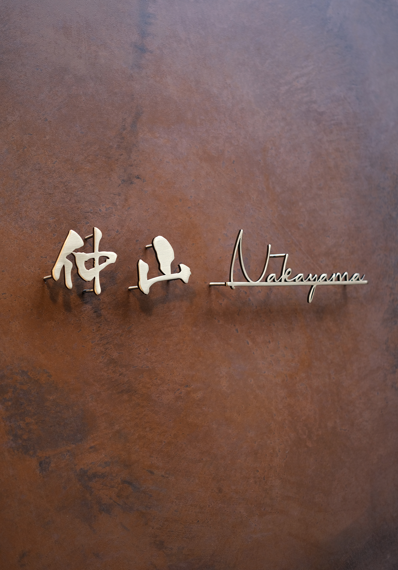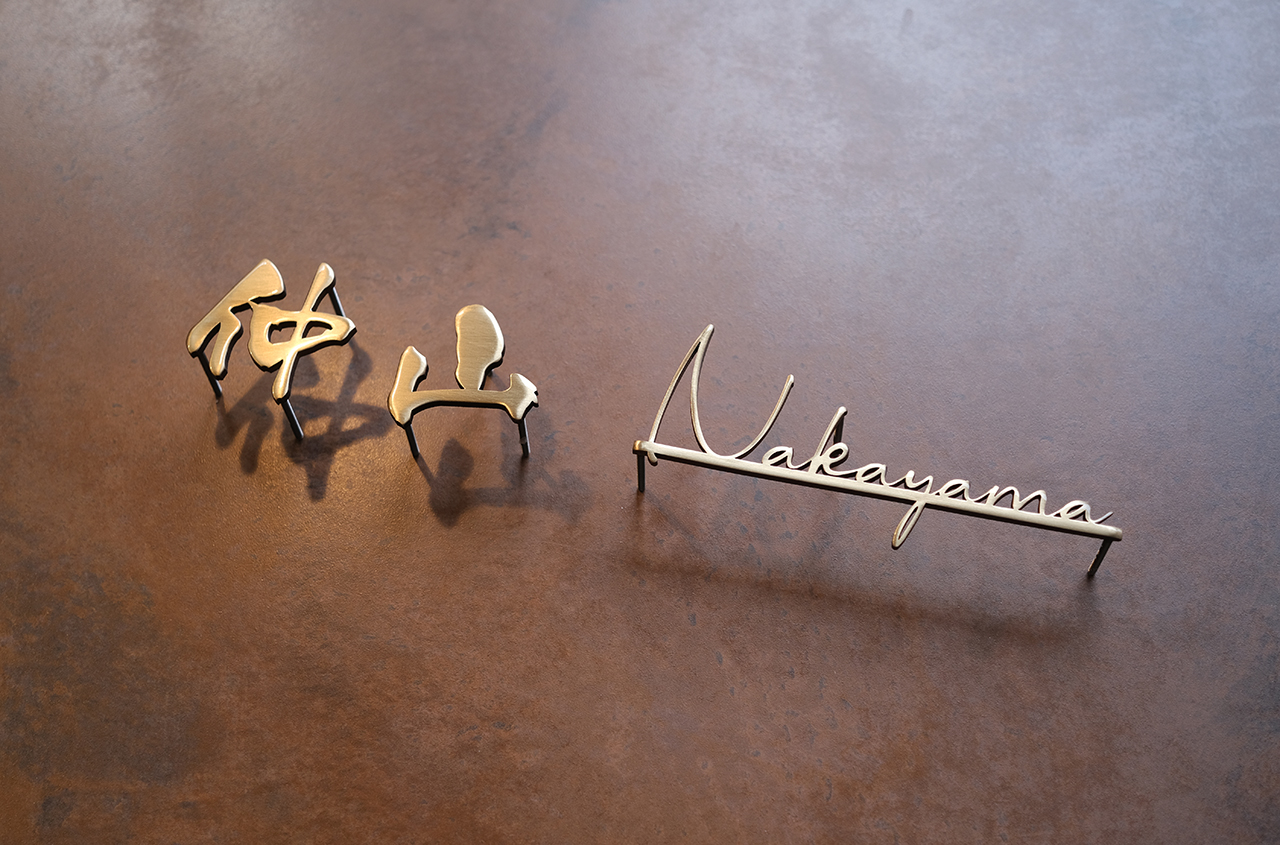 いぶし仕上げの真鍮切り文字表札