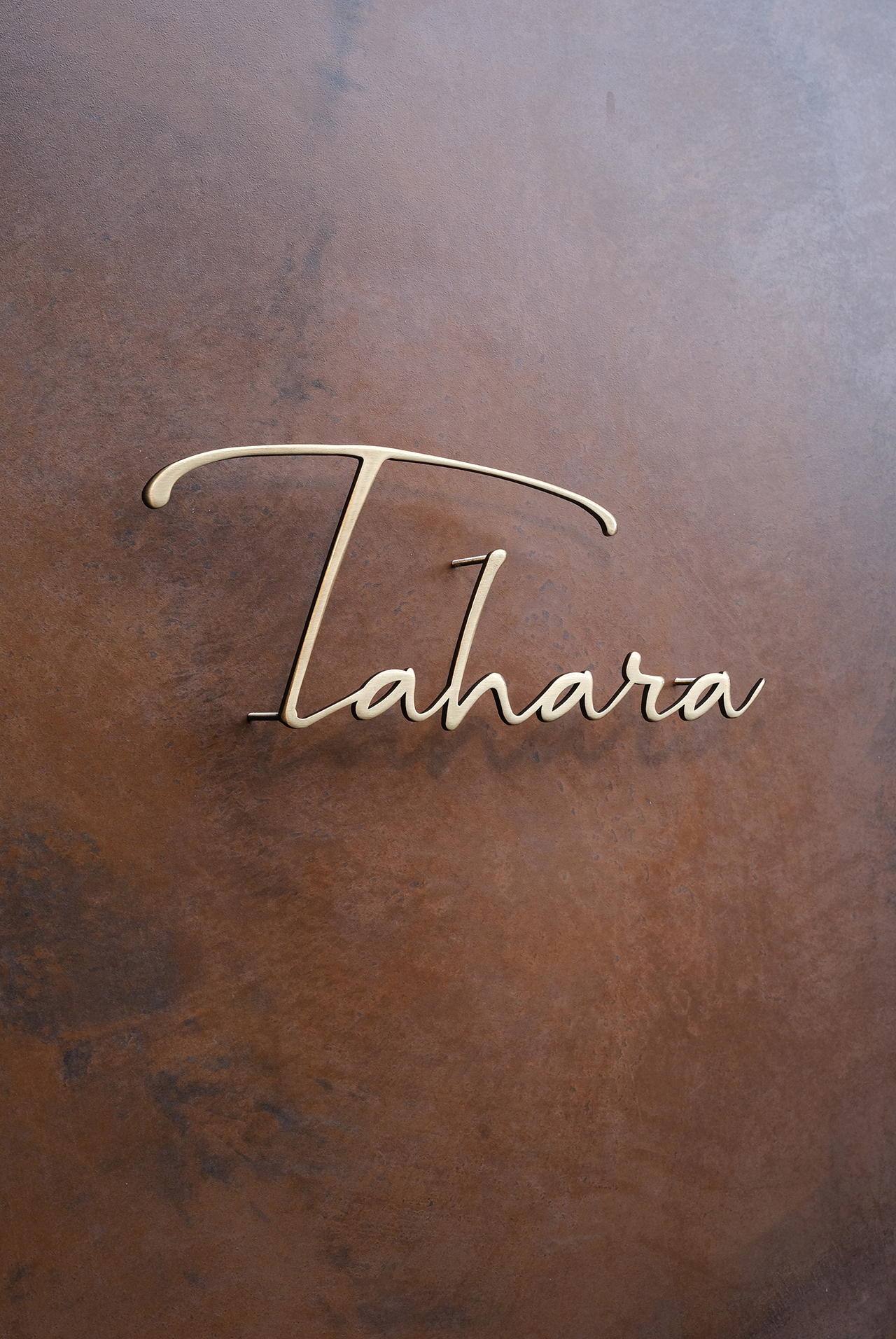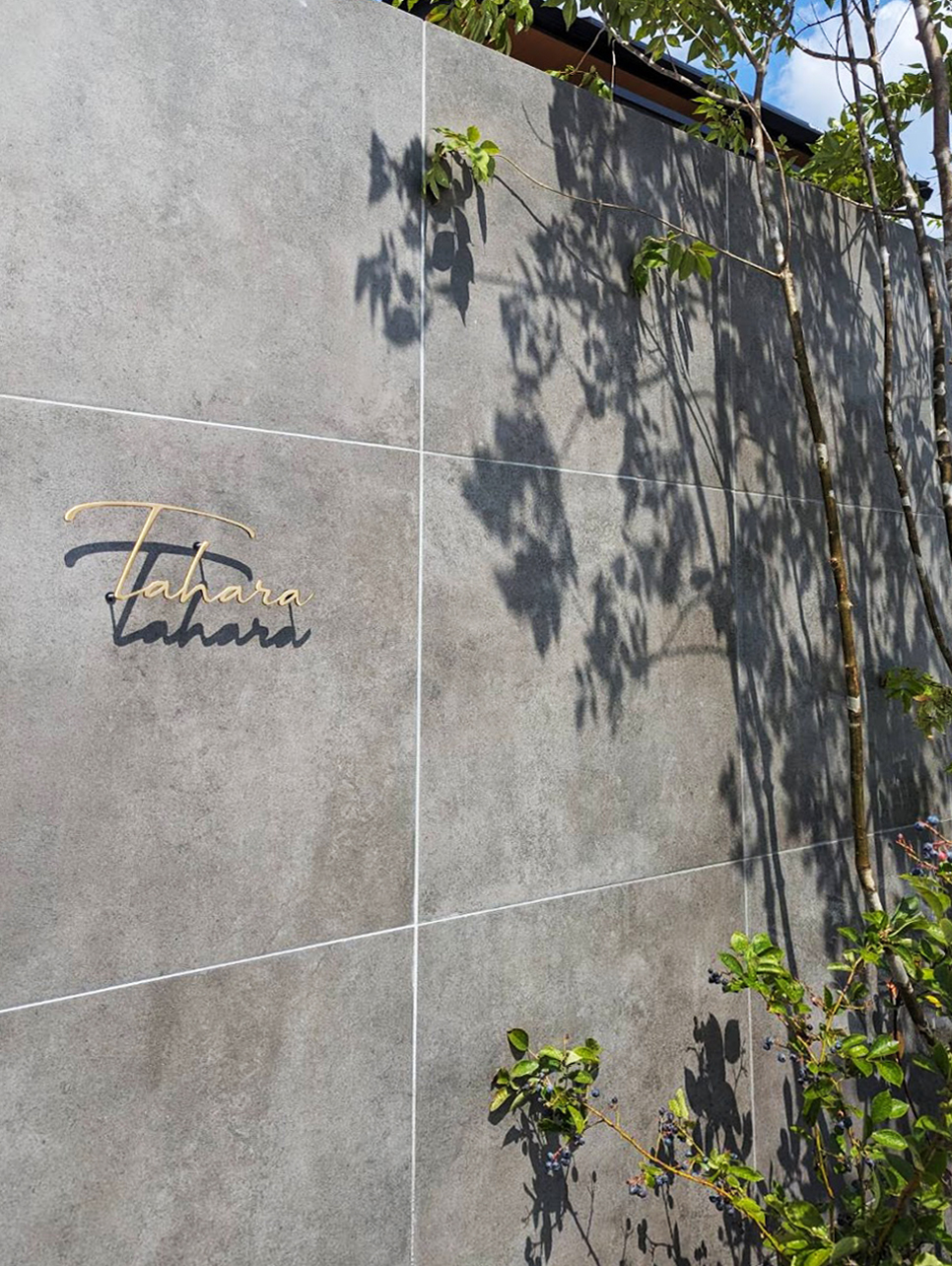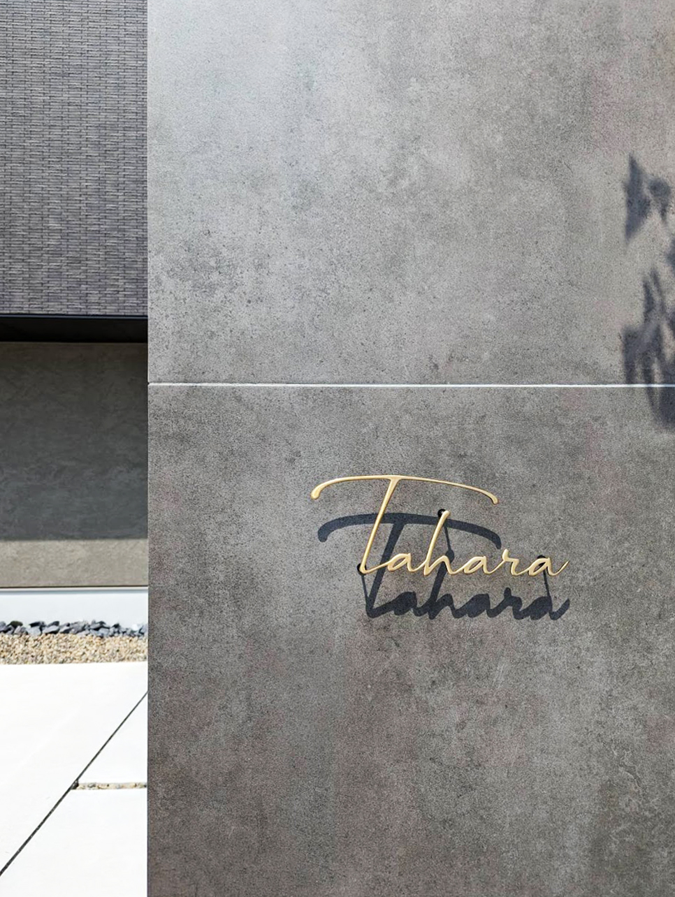 いぶし仕上げの真鍮切り文字表札