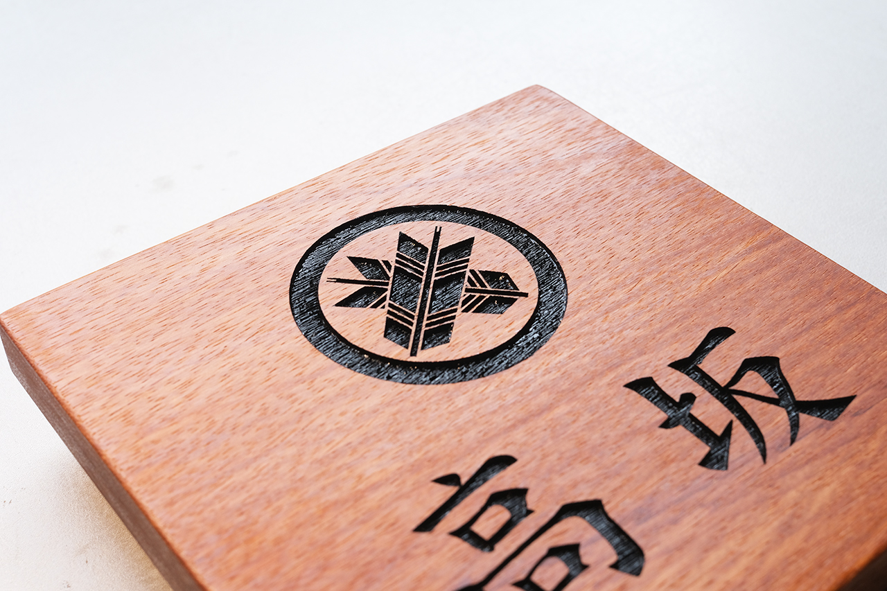 木の表札 家紋デザイン 丸に違い矢 2023/8/17 木曜日 by miyasu 木の表札 彫刻創作アパガラスコーティング木家紋 無垢のアパ材の家紋デザインの表札 玄関の写真を拝見してご提案しました 16x16cm 表面はガラスコーティング処理 繊細な家紋『丸に違い矢』を忠実に彫刻して着色しています LINEで打ち合わせ 兵庫県に送ります 高坂 お問い合せ用URL : このページで紹介した作品についてのお問い合わせは、上記URLをコピーして 『お問い合せ』のぺージの記入欄に上記「お問い合せ用URL」を貼り付けてご連絡ください。 ご質問、見積依頼、ご注文についても『お問い合せ』のページからヒロノクラフト公式LINE及びメールでお願いします。 ※ご利用いただく端末によっては、コメント送信後にエラー表示されるなどのうまく反映されない場合がございます。 その場合はLINEにて、ご連絡ください。